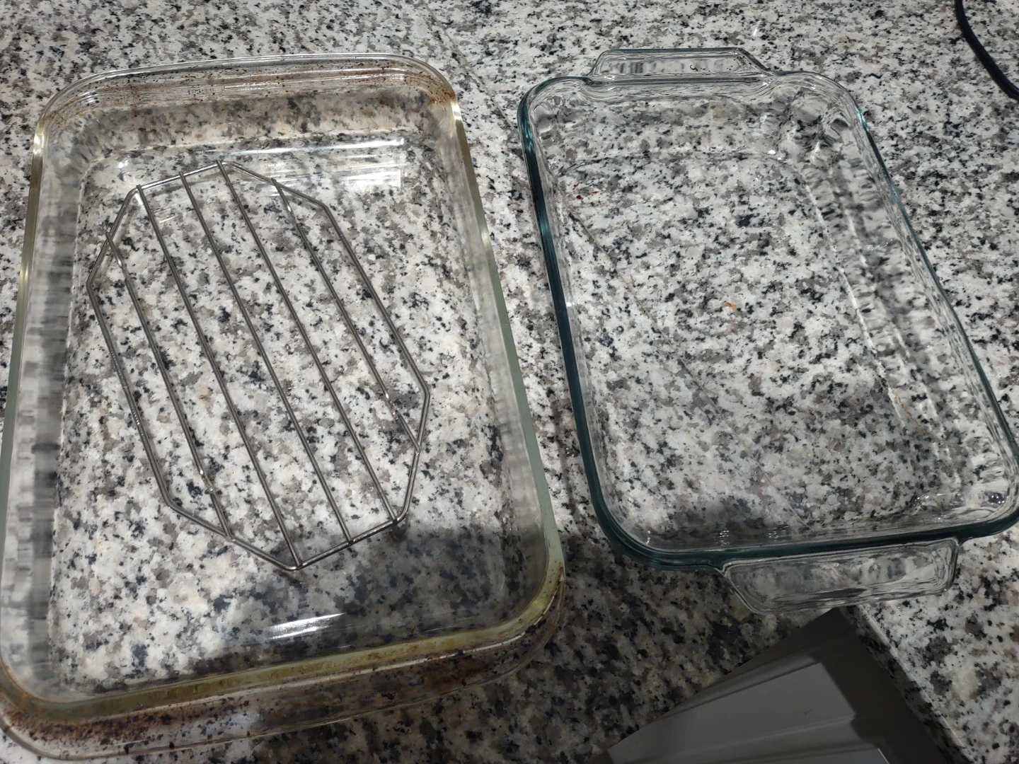 This set includes two glass roasting pans with a metal rack. Both are made of durable glass for even heating. Perfect for roasting meats or baking casseroles!