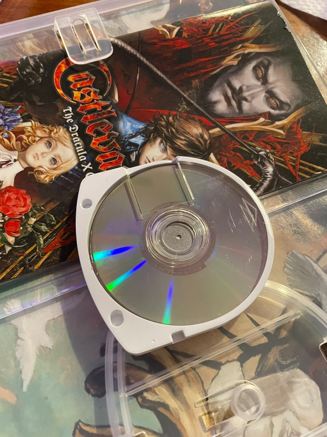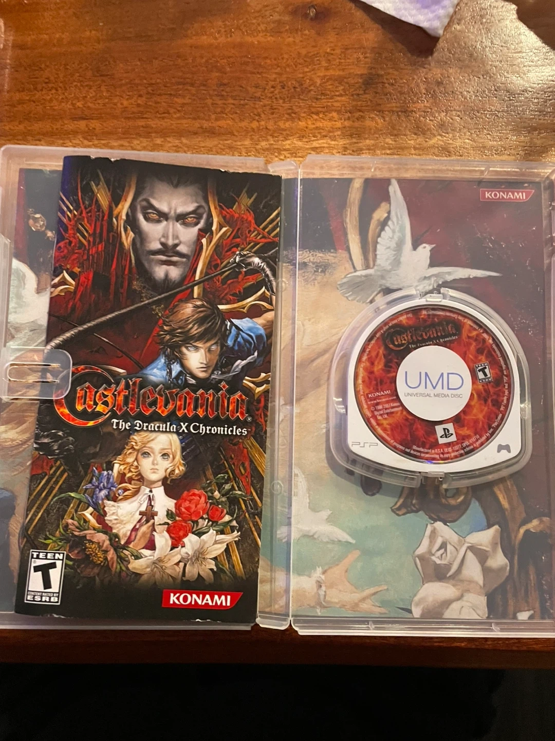 This is the Castlevania The Dracula X Chronicles game for PSP. It includes the original case and UMD disc. This action-adventure game lets you play as Alucard, the son of Dracula, or Richter Belmont.