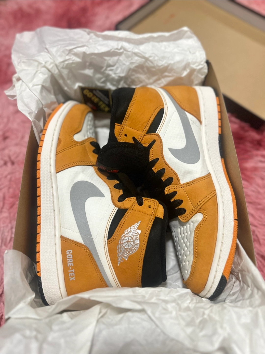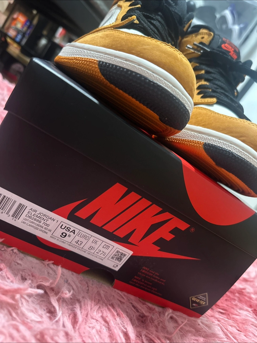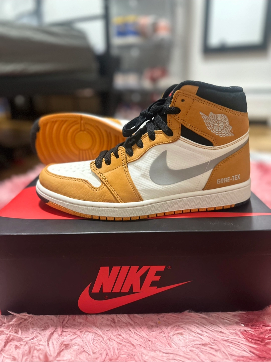 Selling a pair of Nike Air Jordan 1 Element Gore-Tex in gold! They are a US size 9.5 and come with the original box.