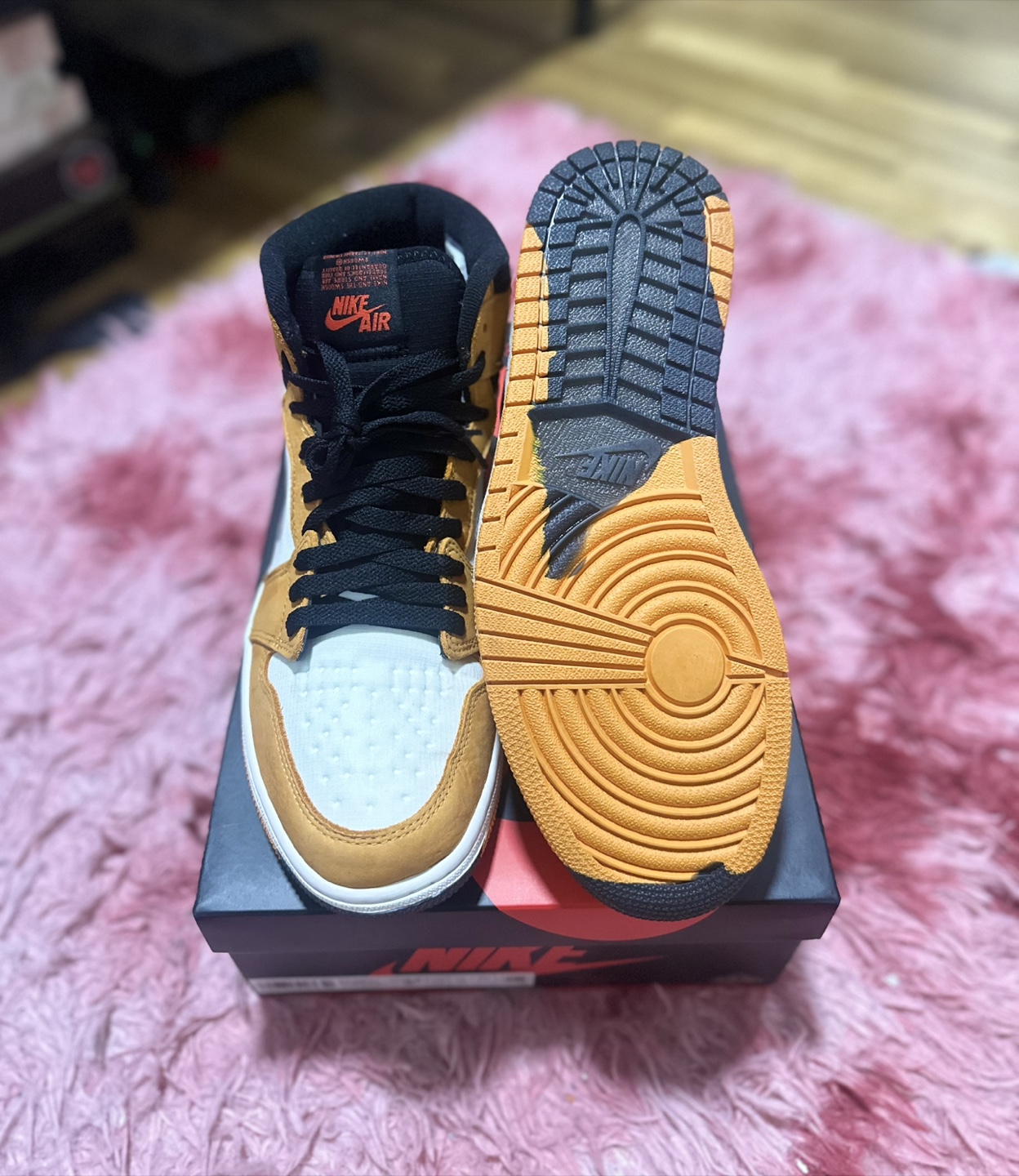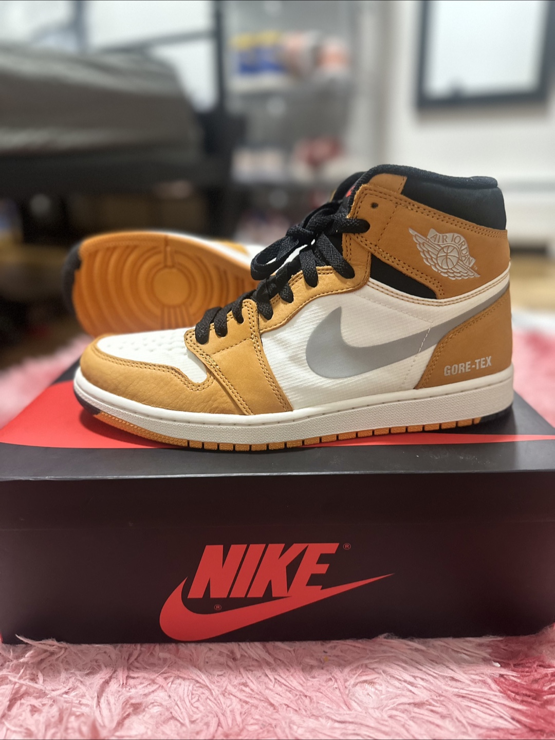 Selling a pair of Nike Air Jordan 1 Element Gore-Tex in gold! They are a US size 9.5 and come with the original box.