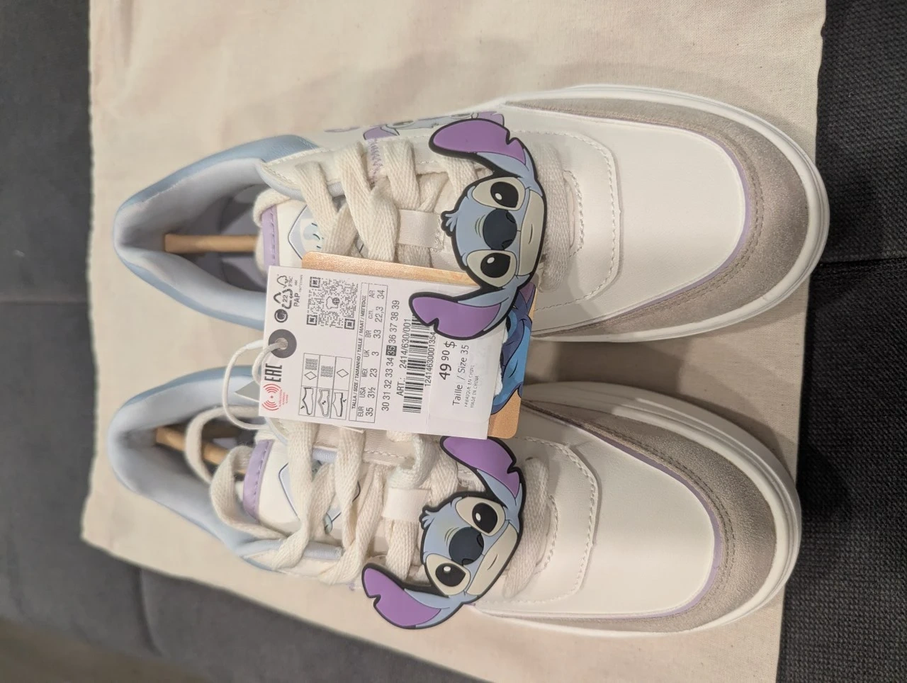 These adorable Zara sneakers feature a cute Stitch design! They are brand new with tags and are a size 35. They were originally priced at 49.90 EUR.