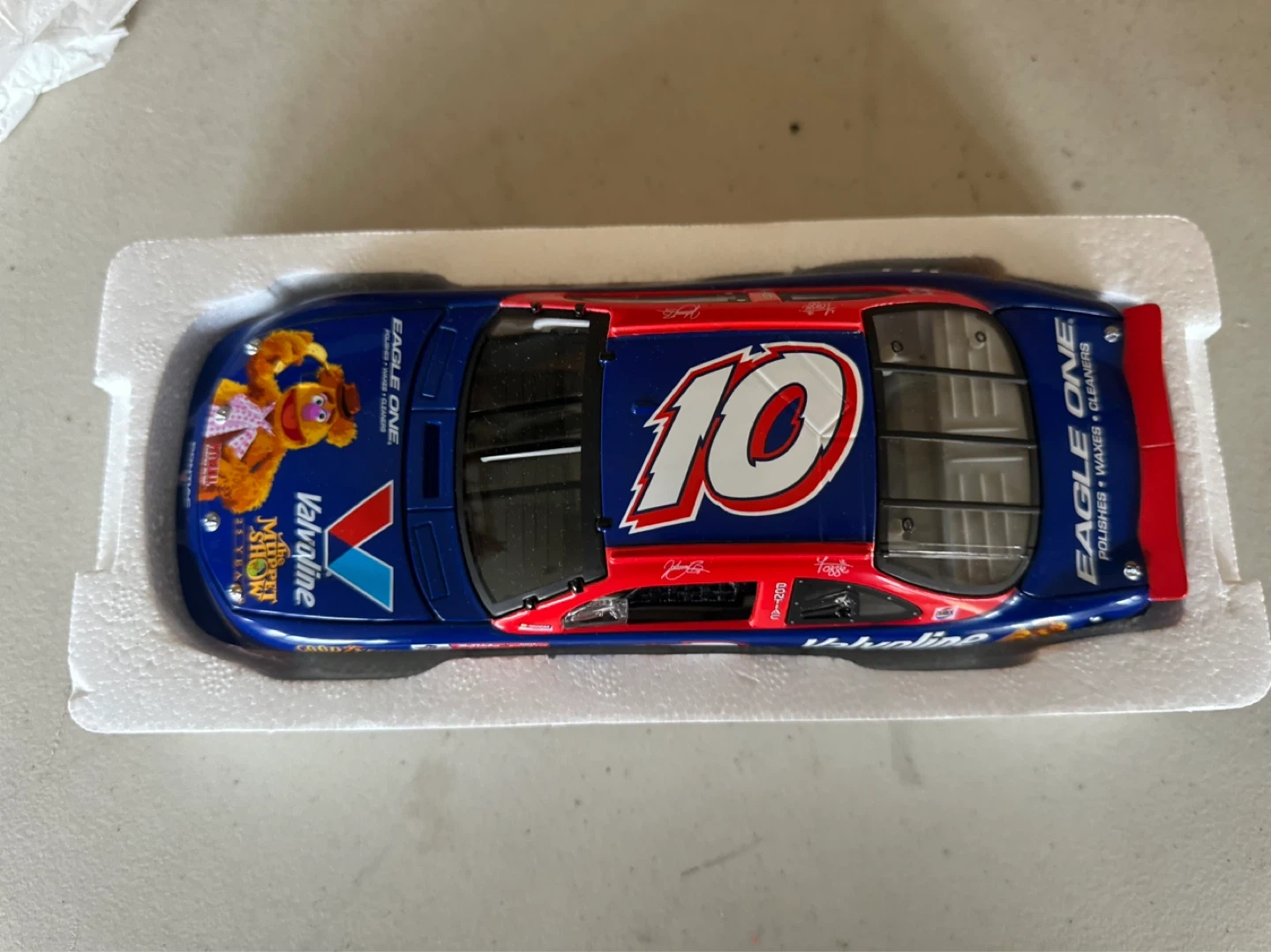Action Racing Collectables 1:24 scale stock car. This limited edition adult collectible features the "Muppet Show" livery with Kermit the Frog. It includes the original box and foam packaging. Never been used