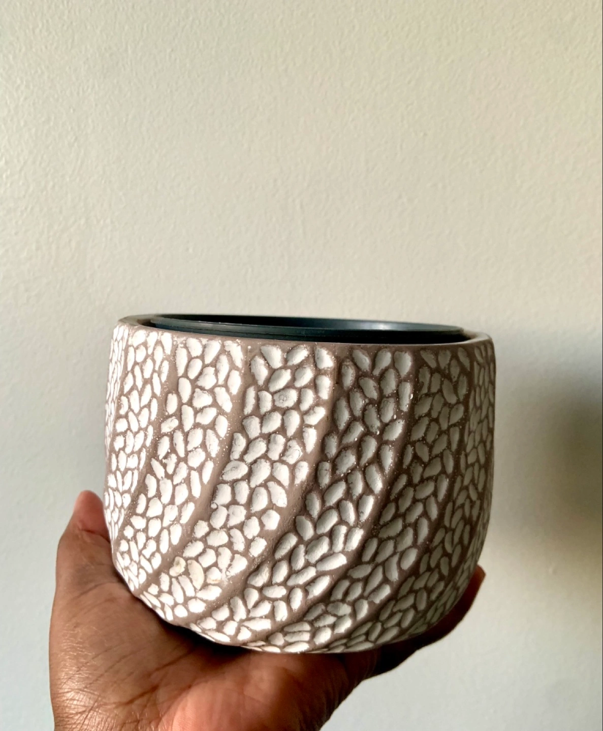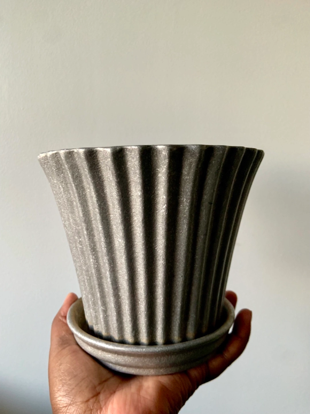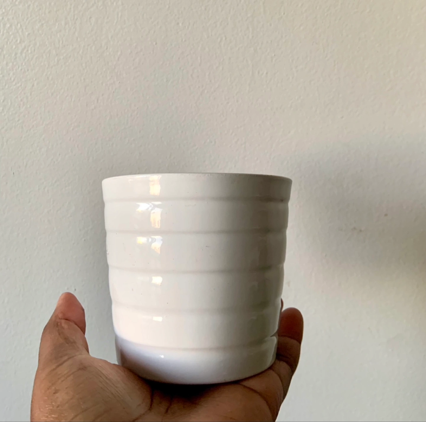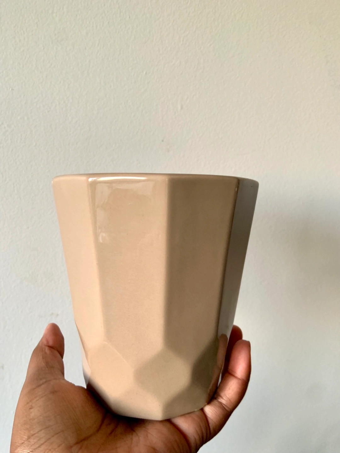 Six ceramic planters. Various colours and patterns. Includes saucers for some. Perfect for indoor plants.