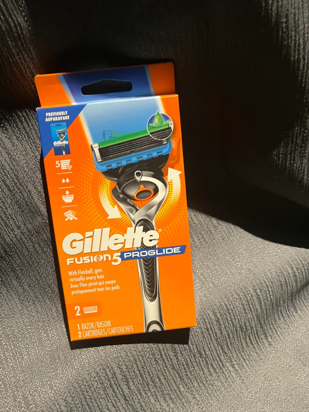 Selling a Gillette Fusion5 ProGlide razor with two cartridges. The box highlights that it has Flexball technology to get virtually every hair. It also has a jumbo lubrication strip, so it's sure to be a smooth shave
