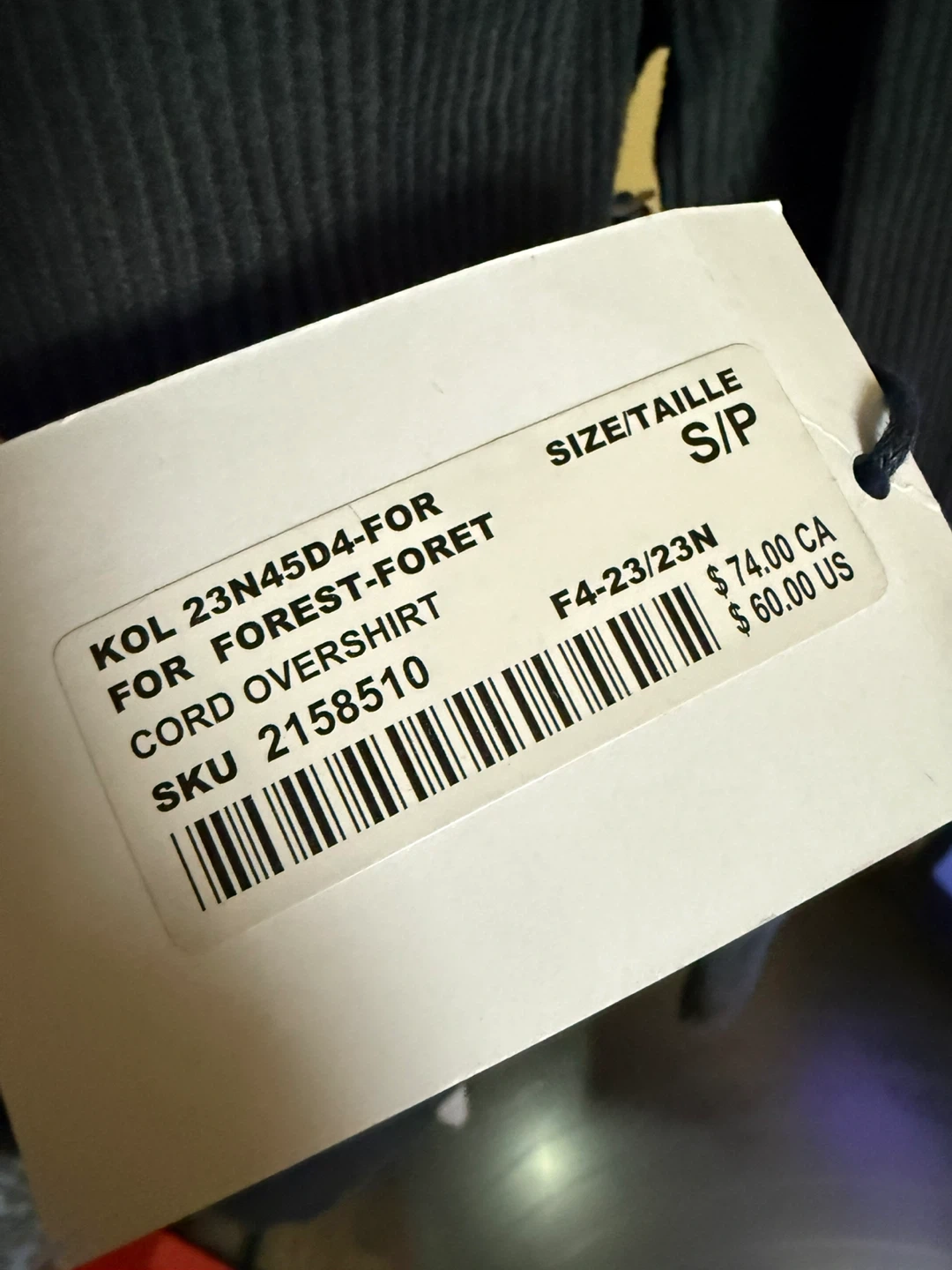 New Kolby corduroy overshirt in dark teal blue -Size S-new with tags on