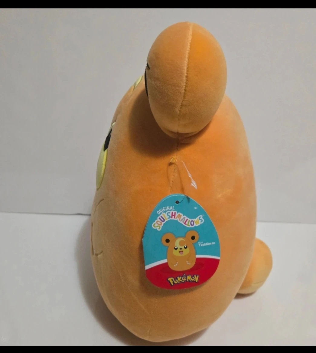 It's an Original Squishmallows plush featuring Pokémon's Teddiursa. Made with soft, cuddly material. Perfect for collectors and fans!