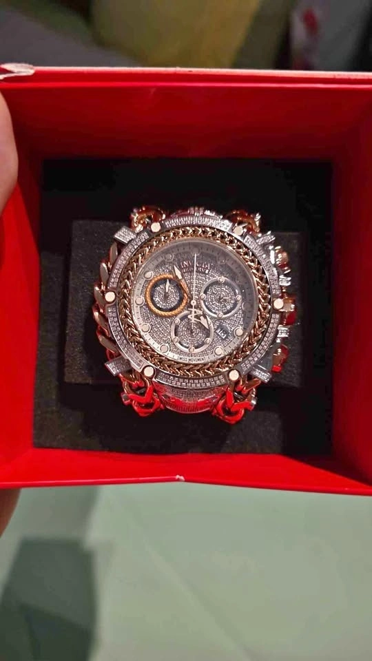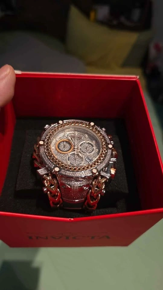 This is an Invicta Reserve Gladiator 2.92 carat diamond men's watch, model 35058, with a 58.3mm two-tone rose gold and stainless steel case and bracelet. This watch feature 696 handset diamonds.