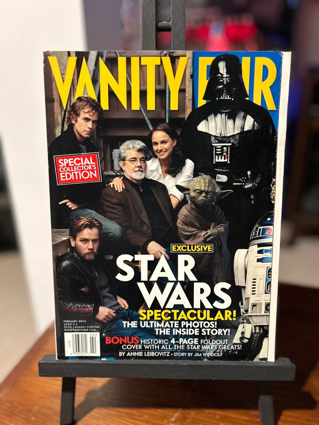 This is the February 2005 "Star Wars Spectacular!" special collector's edition from Vanity Fair. It features "The Ultimate Photos! The Inside Story!". Includes a bonus historic 4-page foldout cover with all the Star Wars greats. Photography by Annie Leibowitz.
