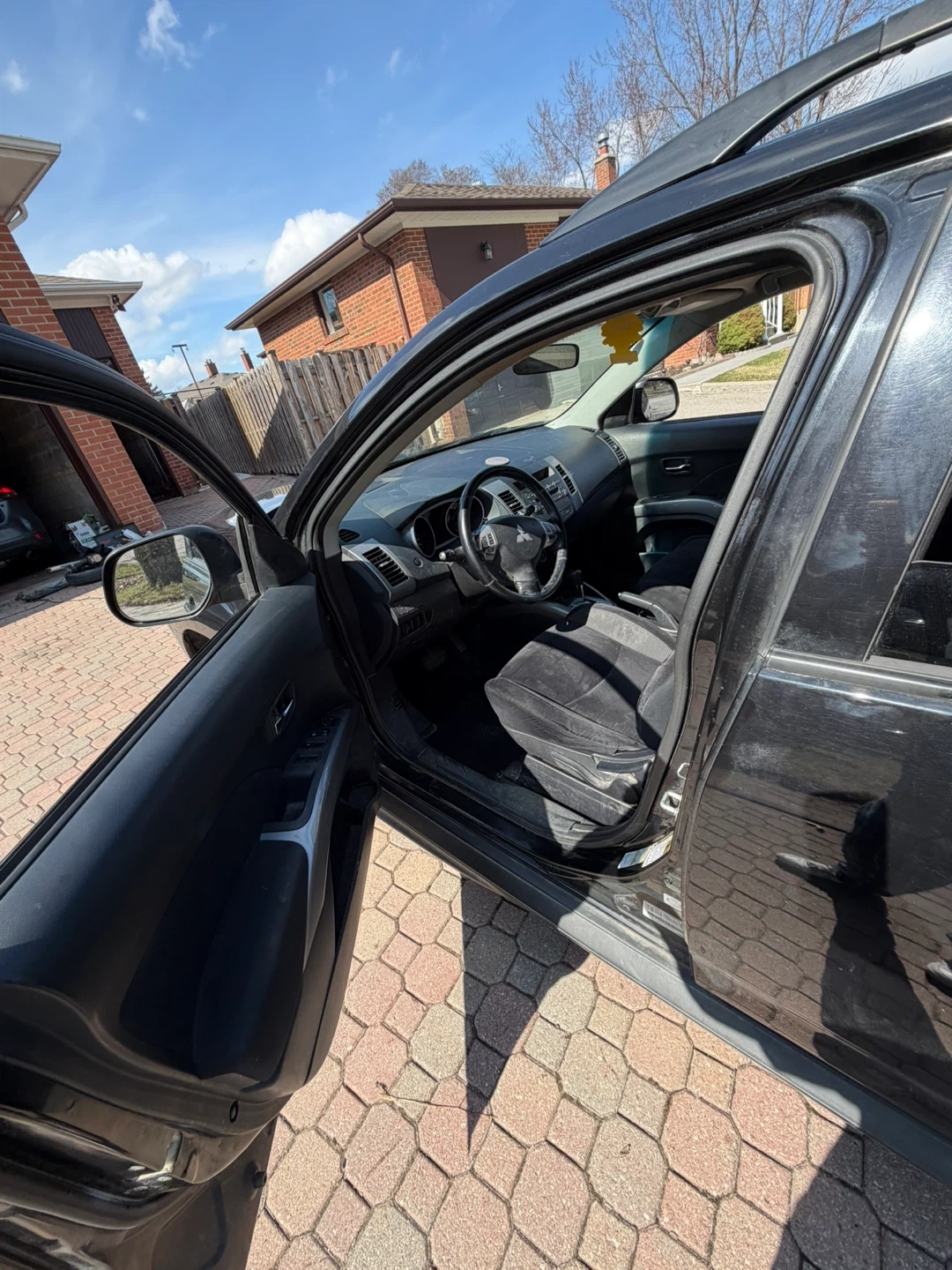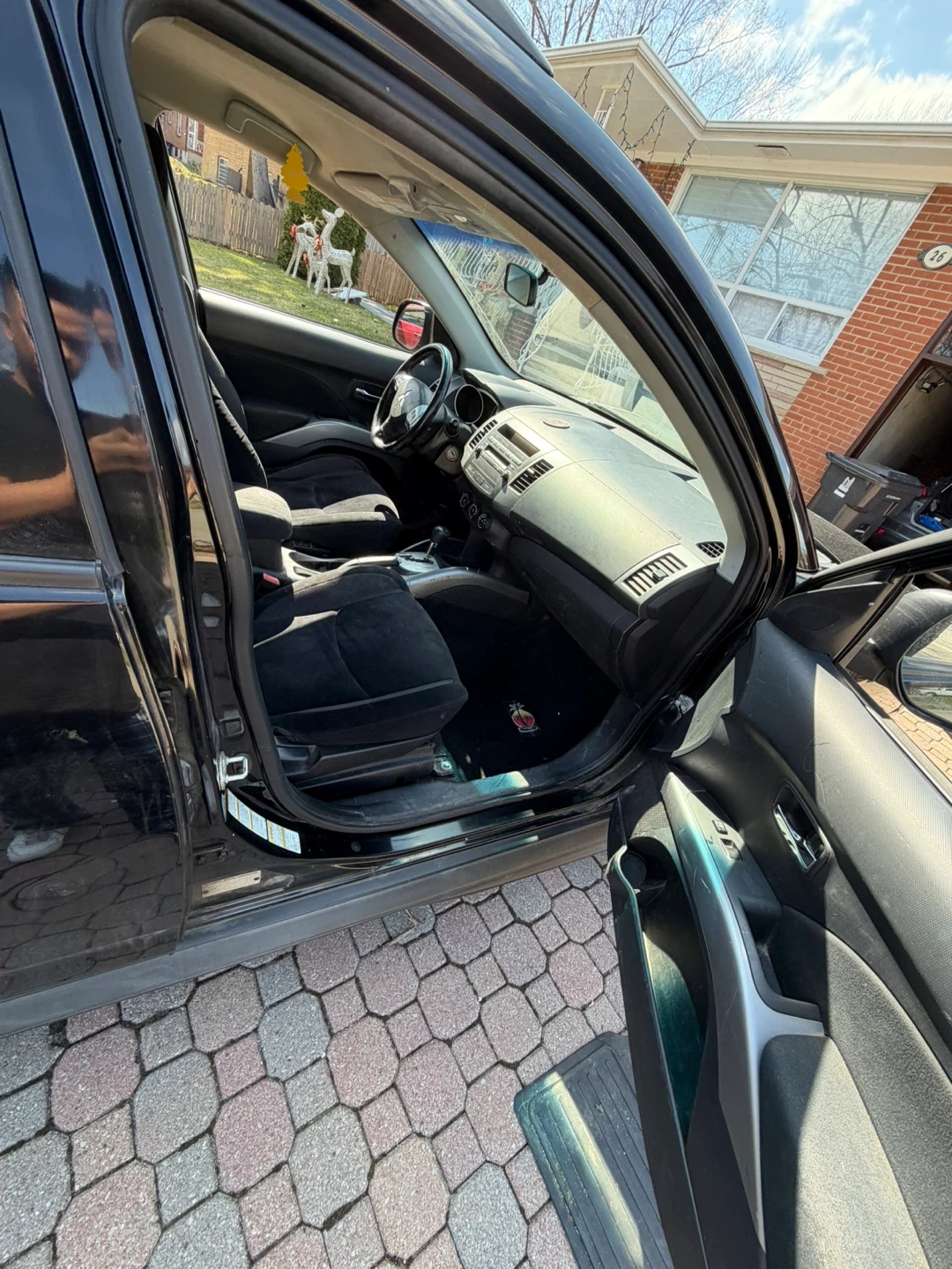 Black Mitsubishi Outlander Sport SUV with V6 MIVEC engine. Interior has cloth seats and a sunroof. It's a 4-door SUV with roof rails and alloy wheels. Great for family trips or daily commutes!