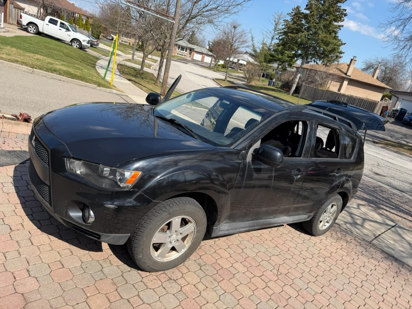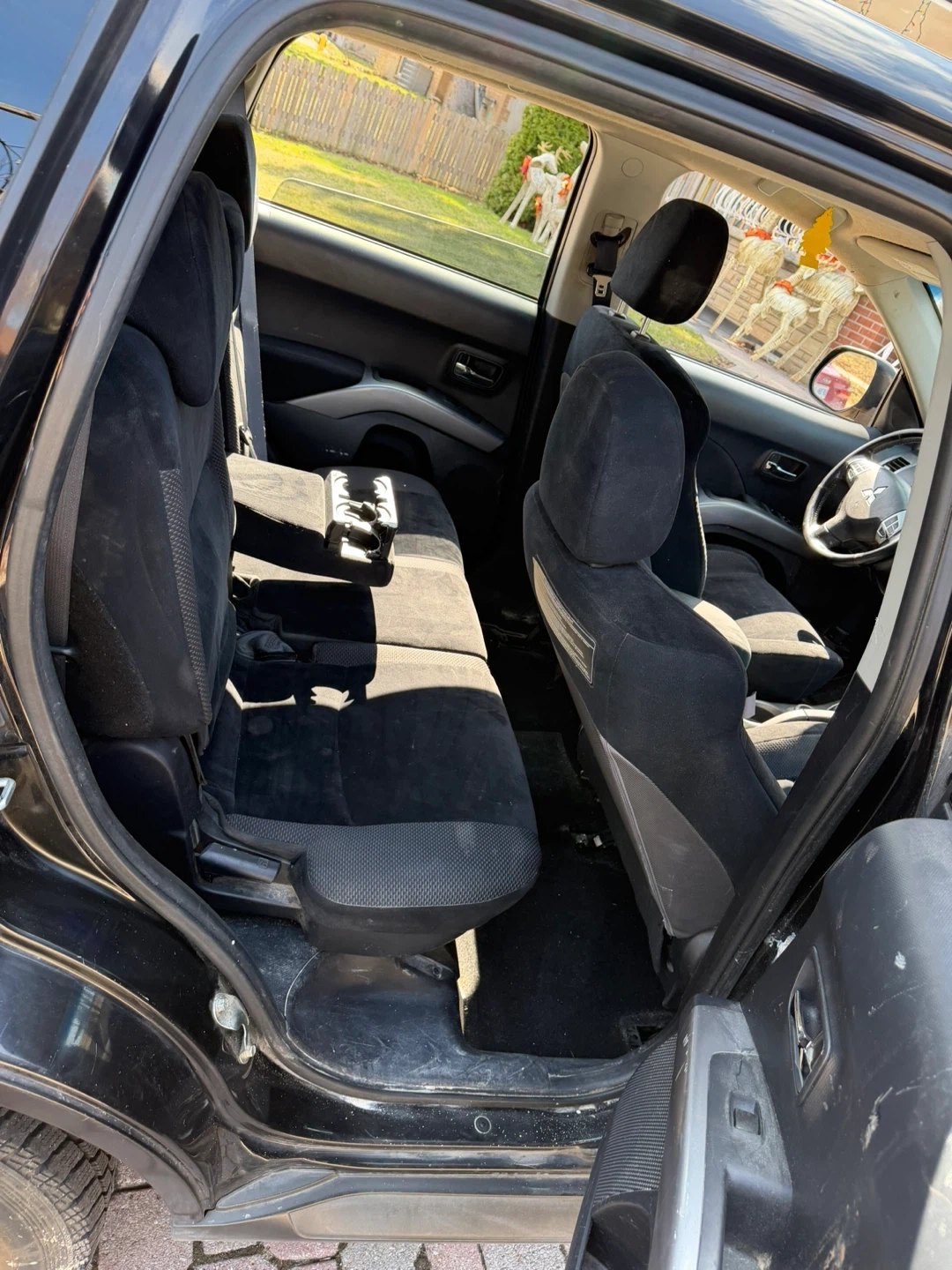 Black Mitsubishi Outlander Sport SUV with V6 MIVEC engine. Interior has cloth seats and a sunroof. It's a 4-door SUV with roof rails and alloy wheels. Great for family trips or daily commutes!