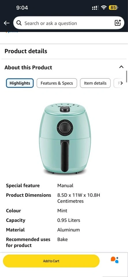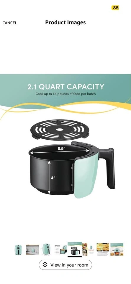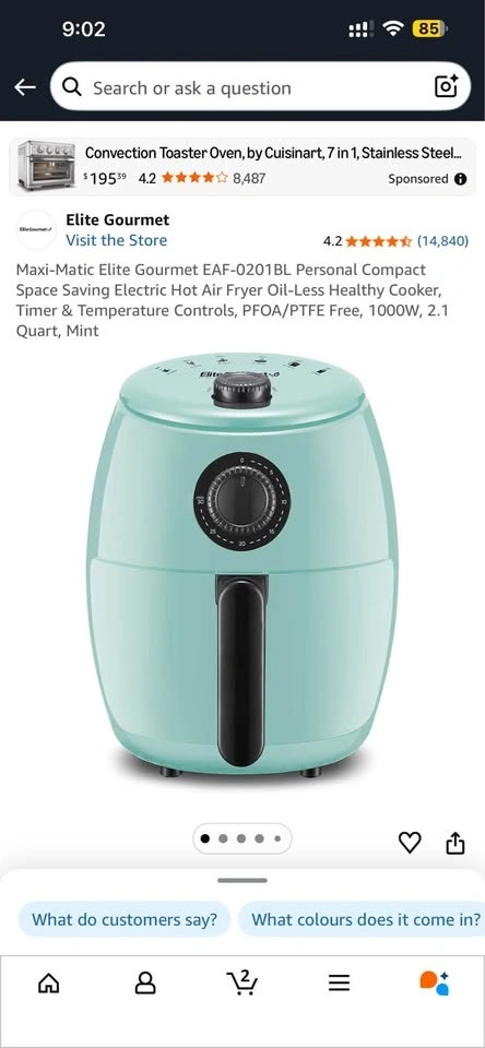 Elite Gourmet Air Fryer EAF 0201BL - 2.1 Qt - Mint
