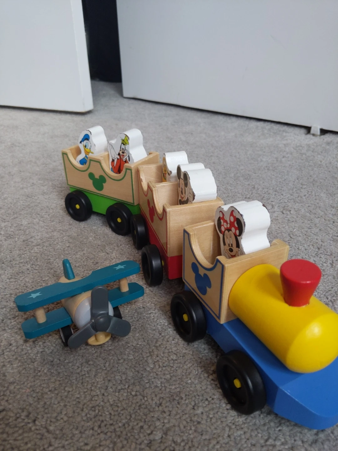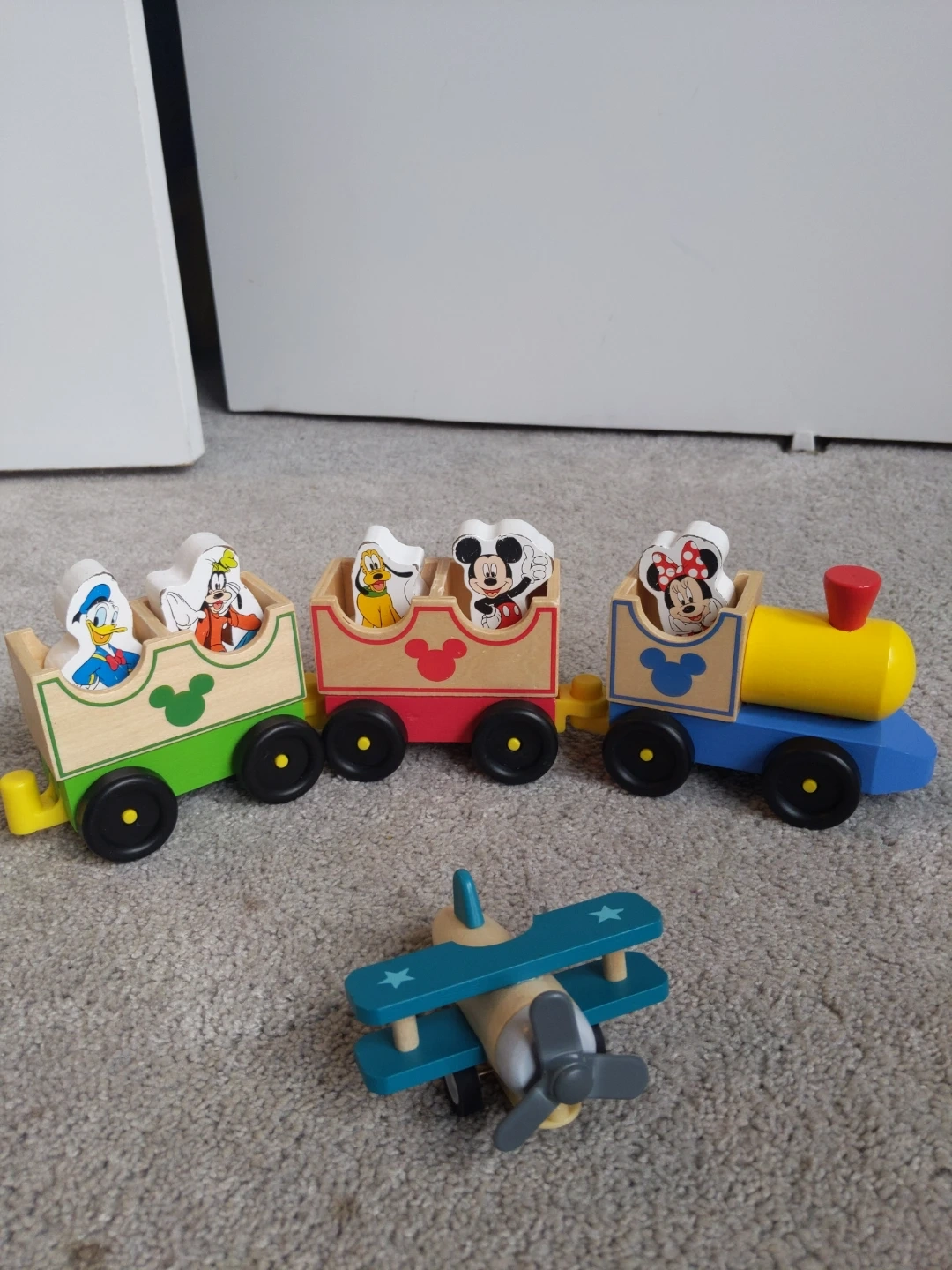 Disney Wooden Pull Toy Train with Wooden Airplane