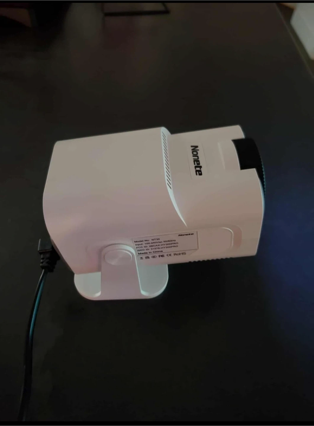 This is a Nonete Ultra HD projector. It features High Dynamic Range and a highlight coating lens. Includes a remote control and a wireless mouse.