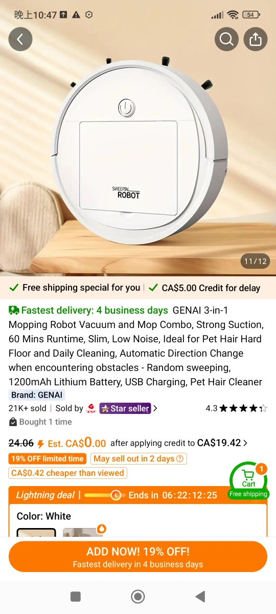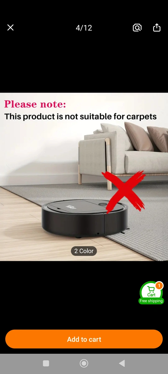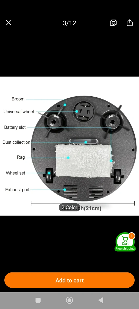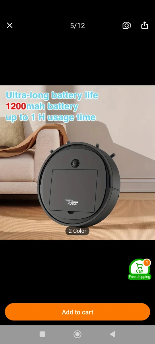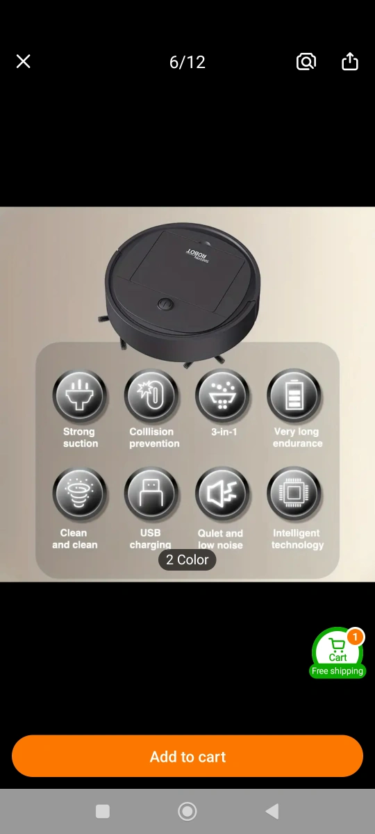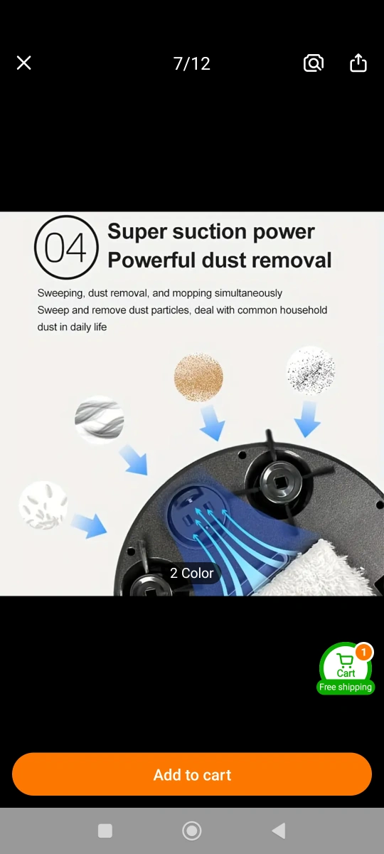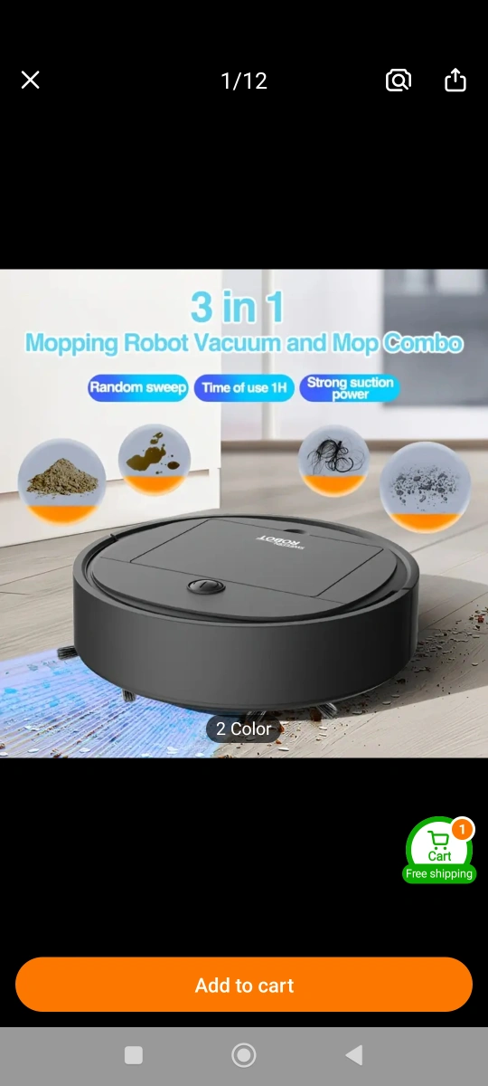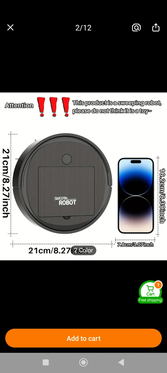 Automated sweeping robot. Features 3-in-1 cleaning functionality, strong suction, collision prevention, and quiet operation. Not suitable for carpets. white.