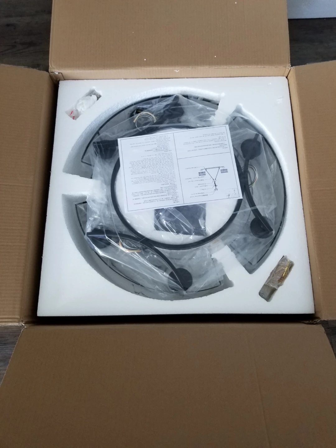 Black crystal chandelier with adjustable chain. Works on flat, sloping, and vaulted ceilings. Comes with all mounting hardware. Bulbs not included