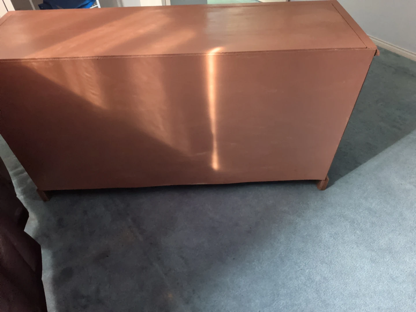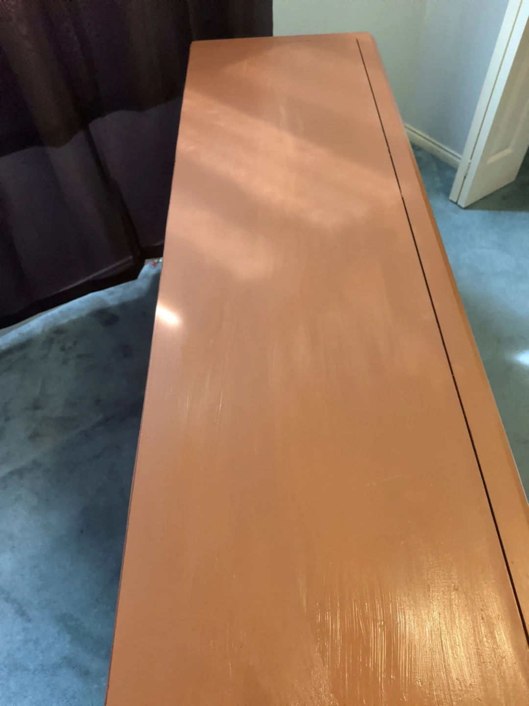 This dresser has a total of seven drawers for storage. It features a unique rustic wood finish with a painted exterior. The handles are decorative metal one drawer is missing a handle easy fix.