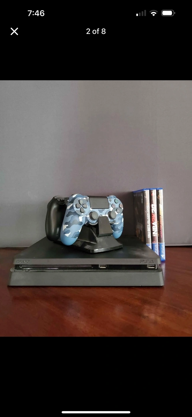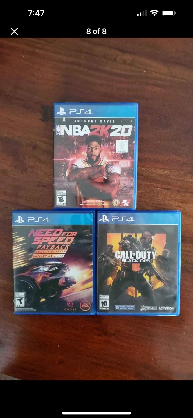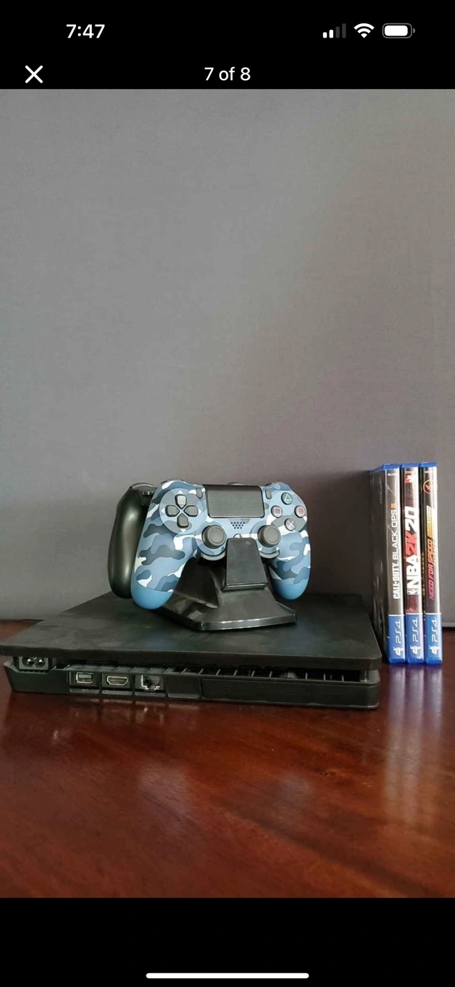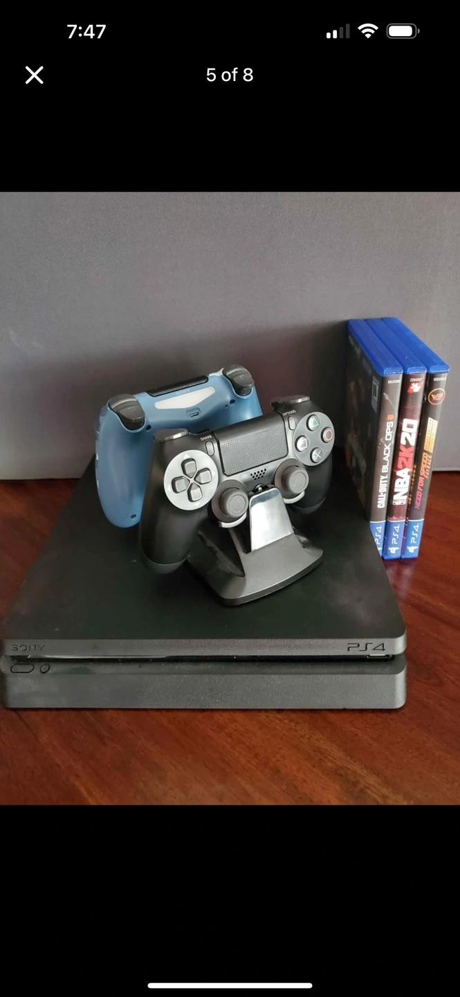 Playstation 4 console, two controllers, and three games: NBA 2K20, Need for Speed Payback, and Call of Duty Black Ops 4. Great condition, ready to play.
