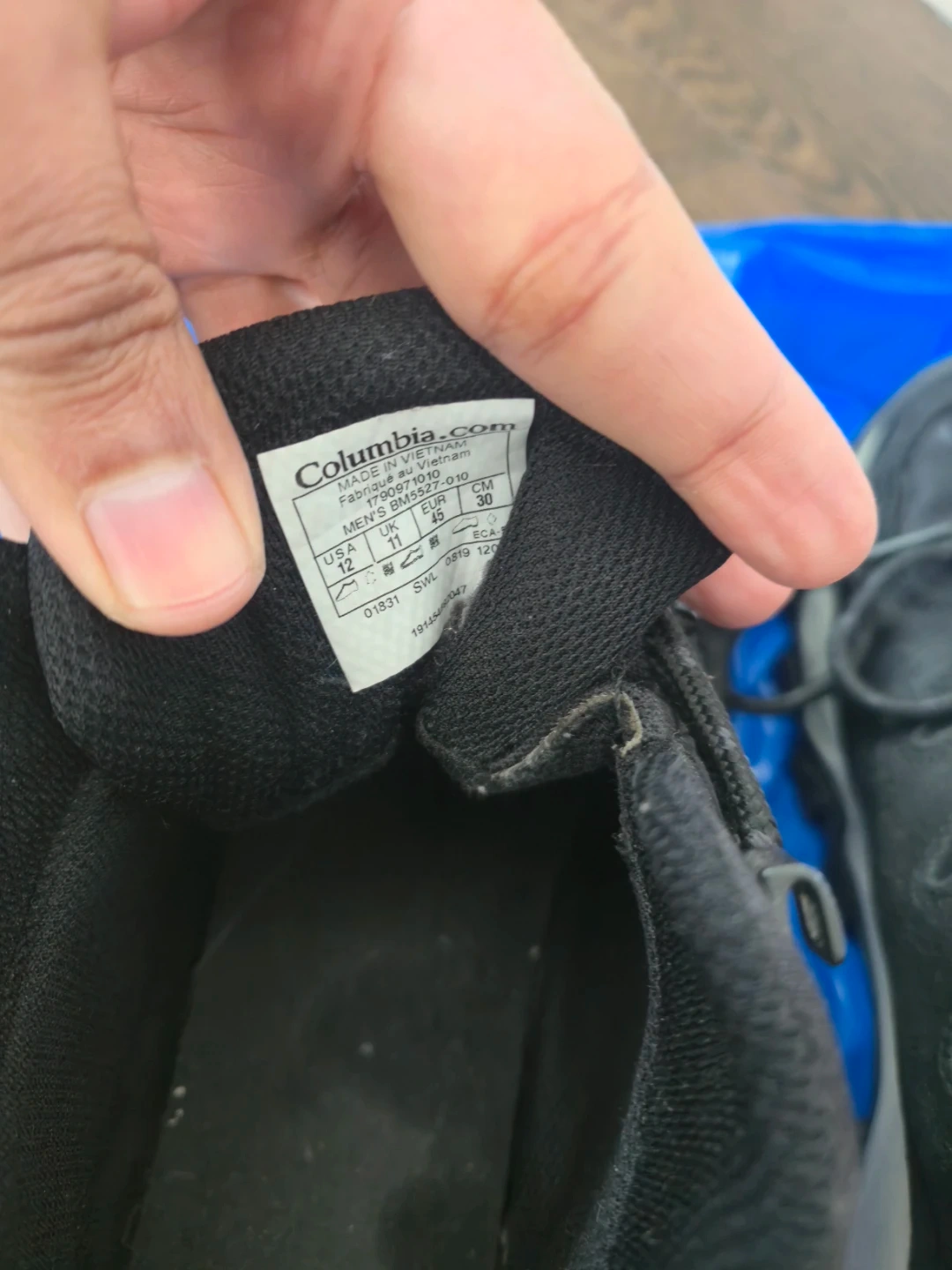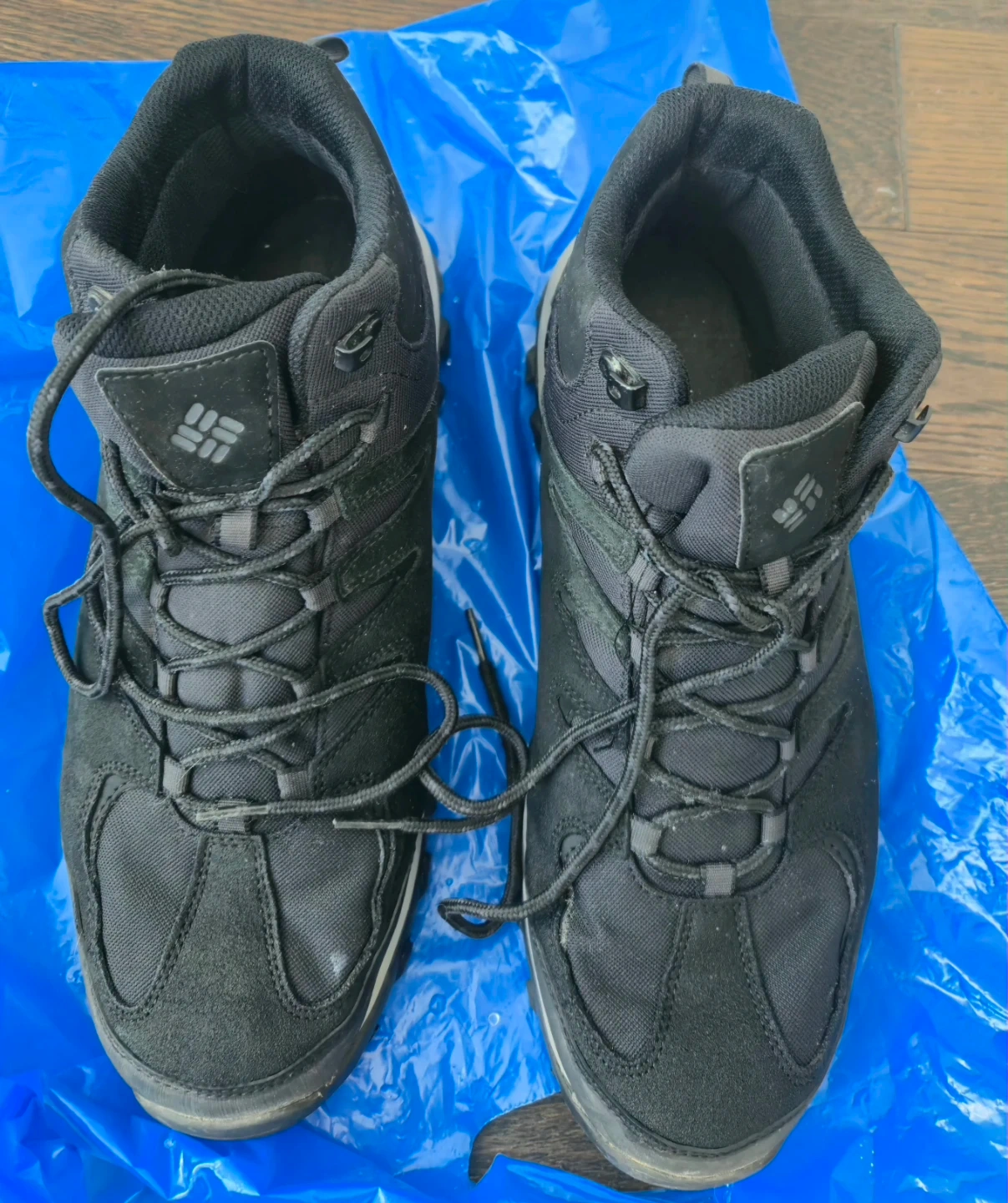 These Columbia hiking boots are black and a size 12. They feature a durable construction for outdoor adventures. Good for winter snow and trails walking!