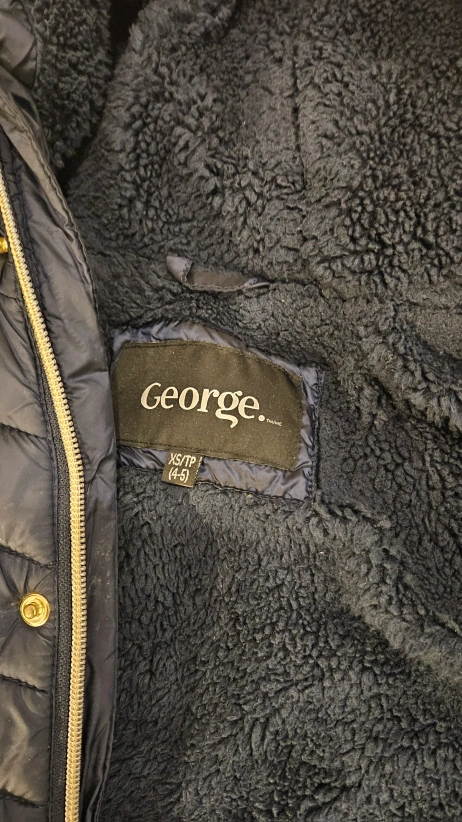 Cozy and warm George kids' puffer jacket, perfect for the colder months! It's a size XS (4-5) and features a soft, plush lining for extra comfort. The jacket is in great condition and ready for a new home