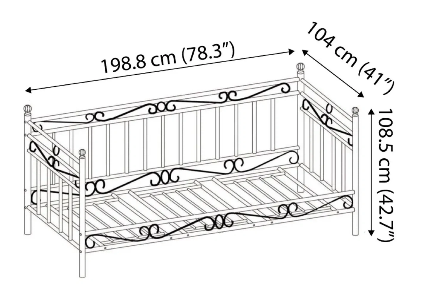 Selling a black metal daybed frame! It's in great shape and ready for a new home. The dimensions are approximately 78.3 inches in length and 41 inches in width.