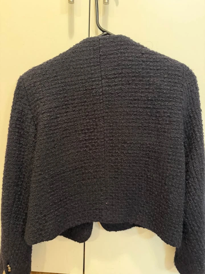 Women’s Tweed Crop-Style Blazer - Dark Blue, Medium