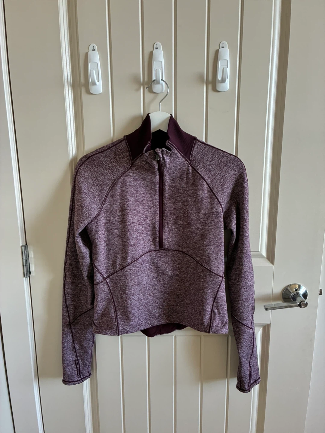 Lululemon Always Alert 1/2 Zip Heathered Garnet. Size:2/Small. Still in good condition.