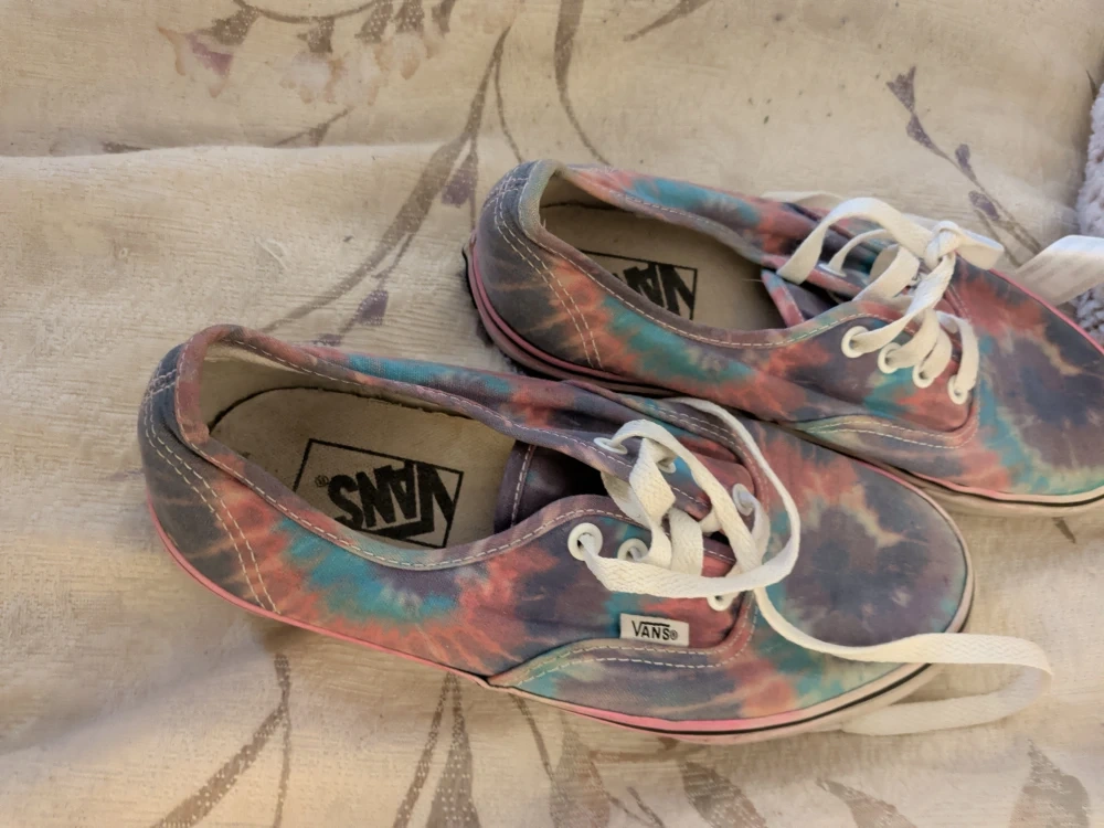 80Selling a pair of Vans sneakers with a cool tie-dye pattern! They're in good condition and ready for a new home. Perfect for adding a pop of colour to your casual outfits