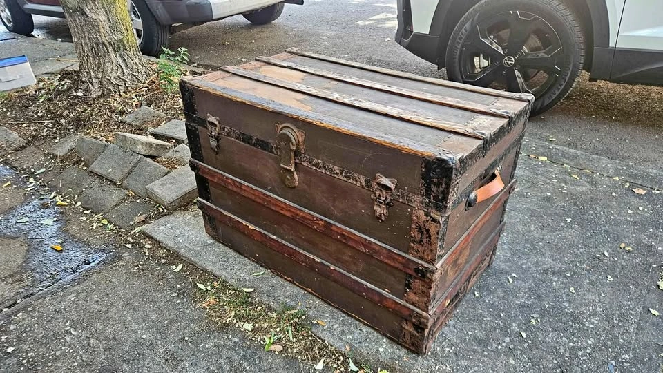 Antique Wooden Steamer Trunk – Rustic Storage Chest