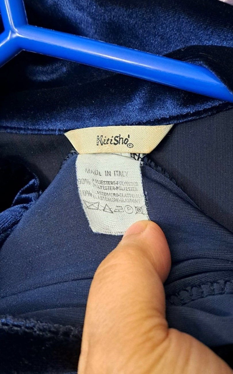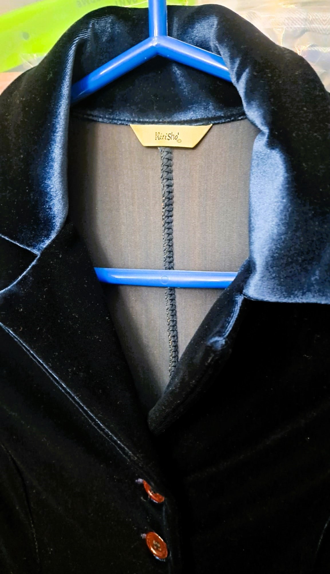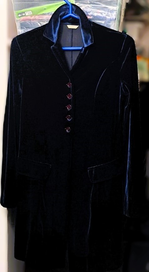 This lovely Women's Midnight Blue Soft Velvet Blazer Long Coat Italian Made with a notched lapel and a five-button closure is often worn for sophisticated events, formal dinners, holiday parties, or to elevate a smart-casual look with jeans or tailored trousers. It features premium quality soft velvet, shoulder pads, five buttons down the front, front flaps pocket design, and a classic notched collar. It is in excellent condition. Well kept and cared for beautifully. Size S/M