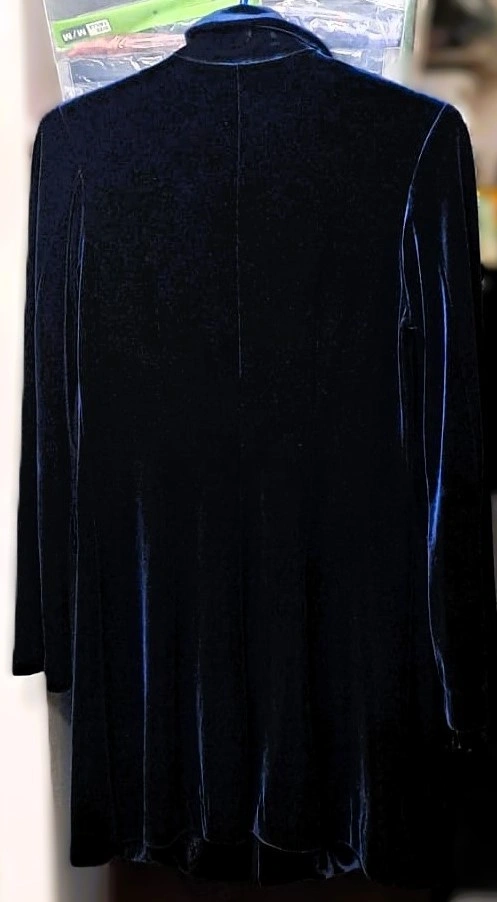 Women Midnight Blue Soft Velvet Blazer Long Coat Made in Italy