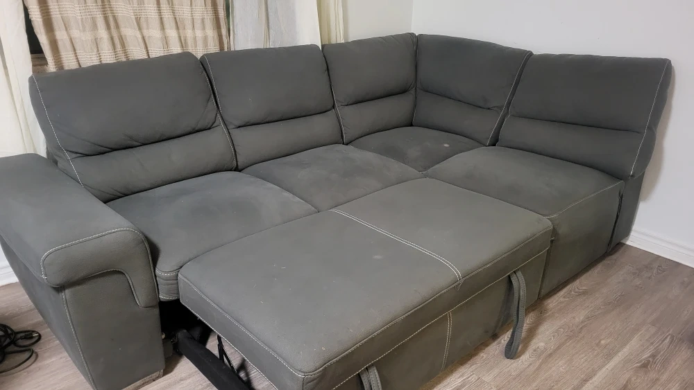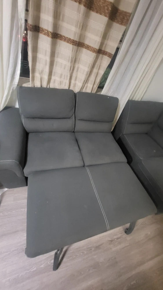 Selling a comfortable grey sectional sofa. It's in good condition and perfect for a living room or entertainment area. Detachable sectionaly & extends into a bed 🛌