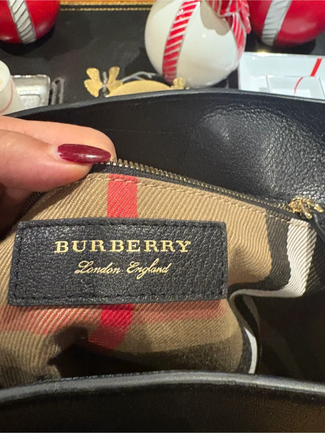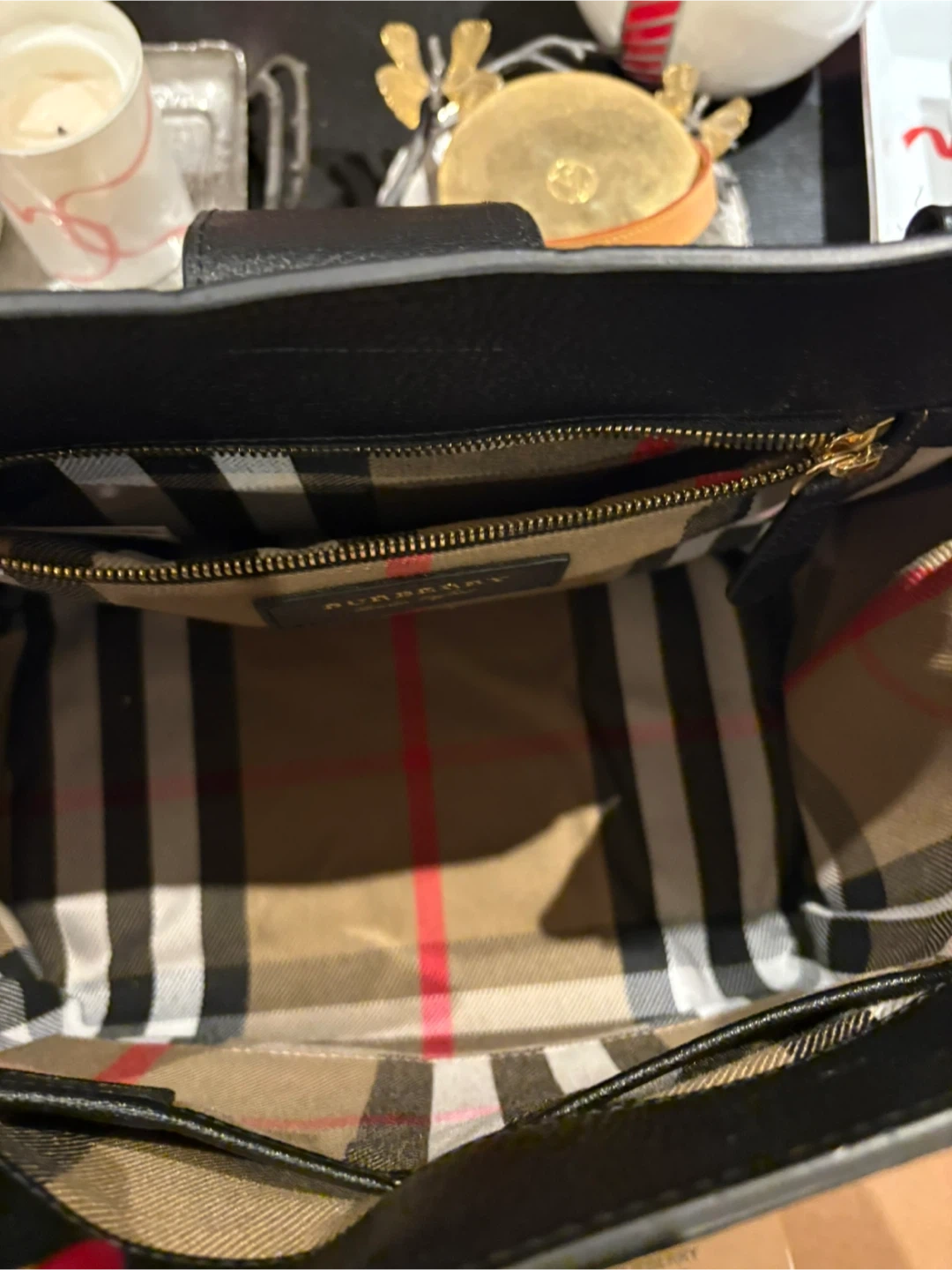 Selling a beautiful Burberry black leather tote bag. It's in great condition and comes with the original dust bag. The interior features the classic Burberry check pattern.