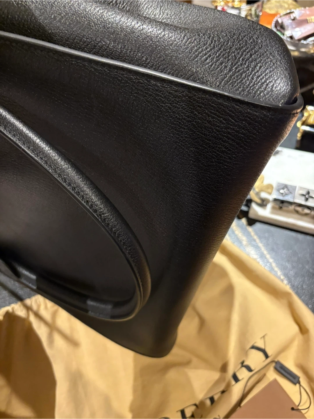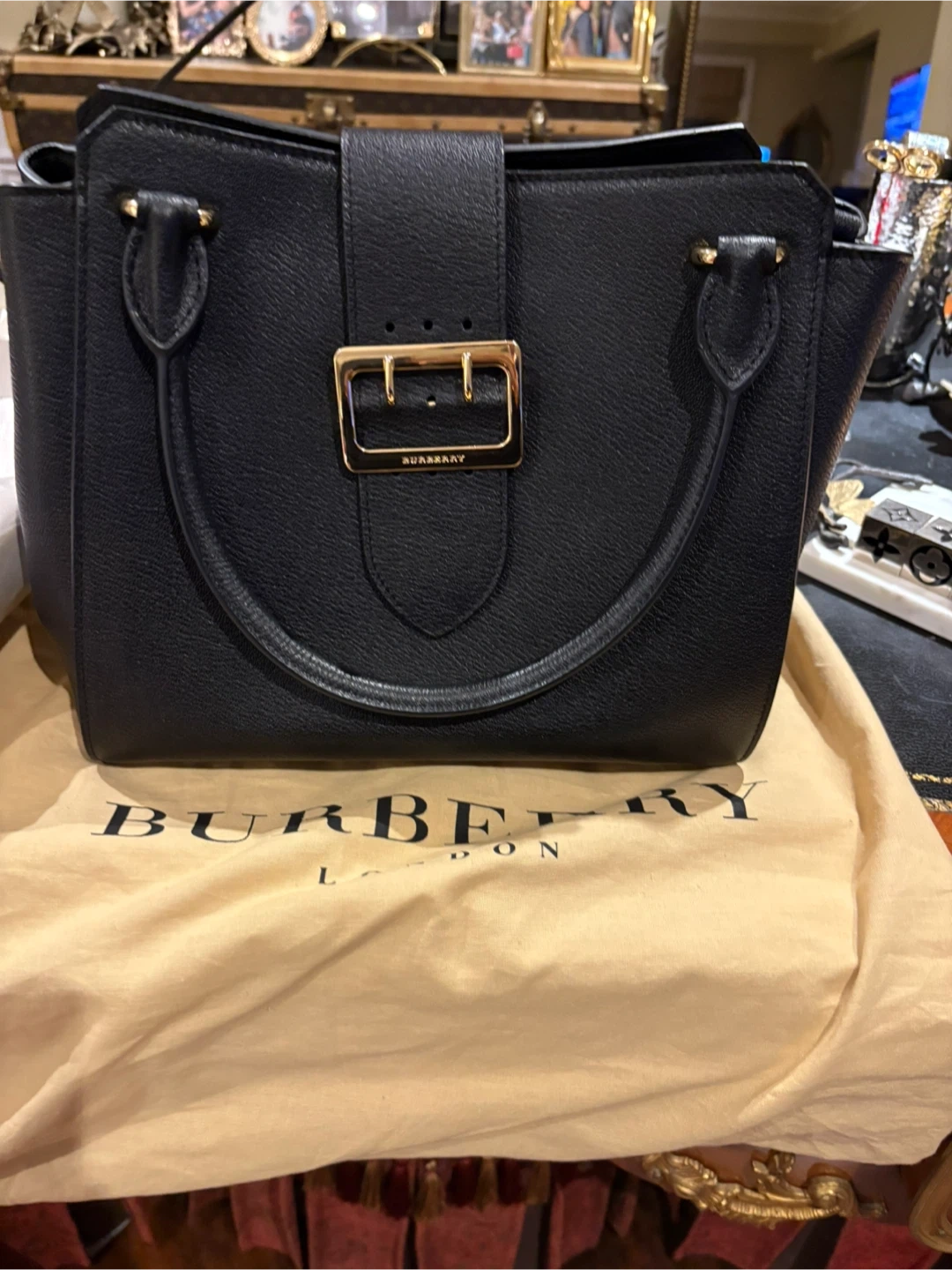 Selling a beautiful Burberry black leather tote bag. It's in great condition and comes with the original dust bag. The interior features the classic Burberry check pattern.