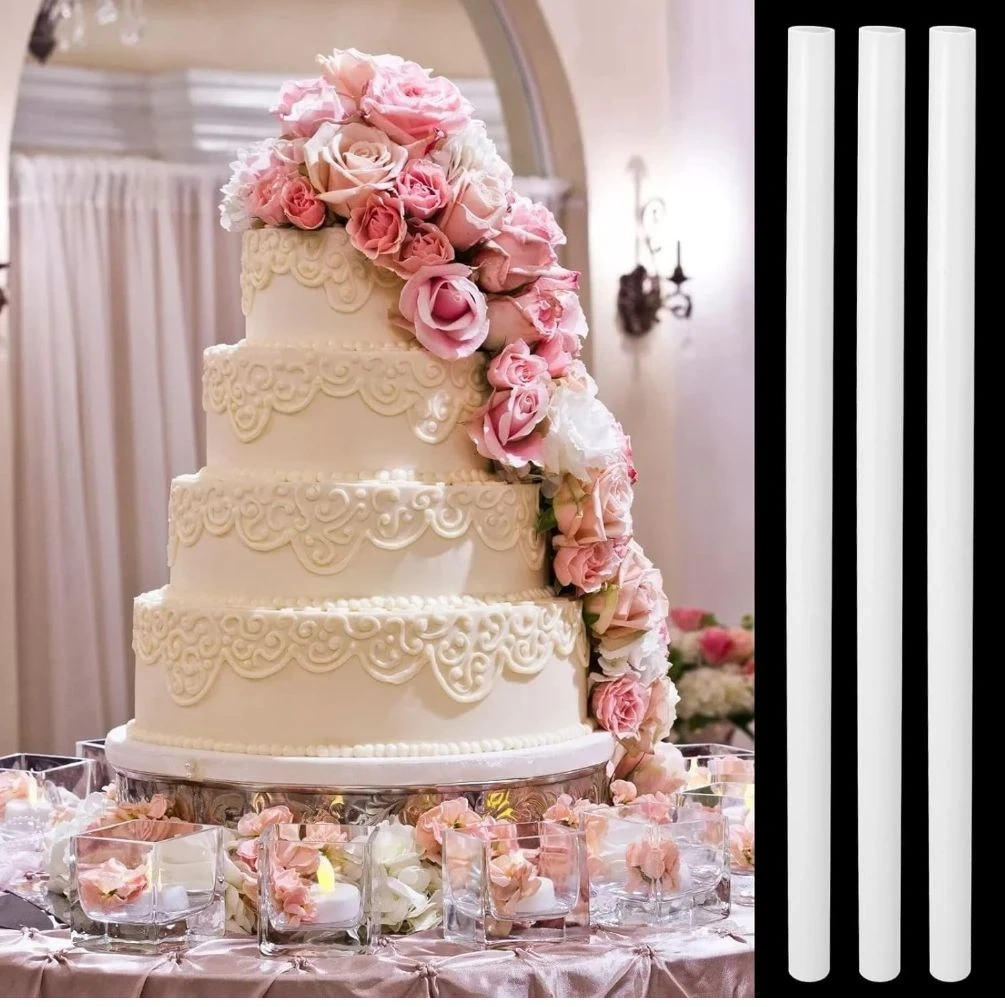 These white cake dowel rods are perfect for supporting tiered cakes. They measure 300mm (11.81 inches) in length, with an external diameter of 12mm (0.47 inches) and an internal diameter of 10.4mm (0.41 inches)