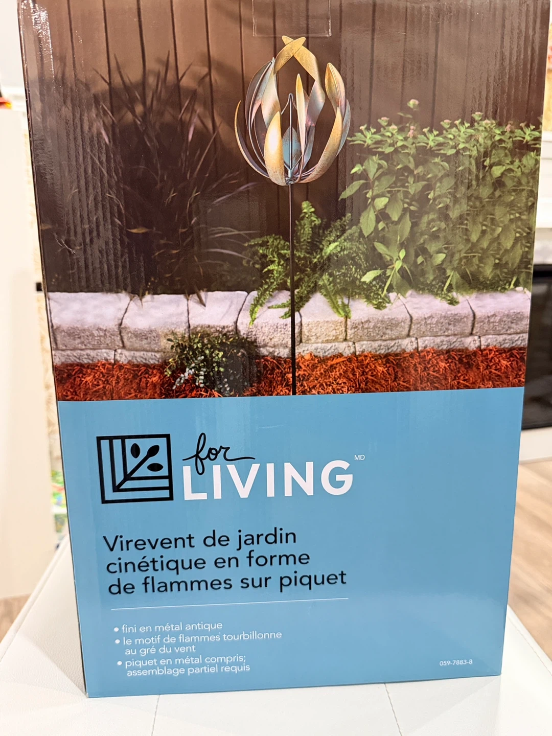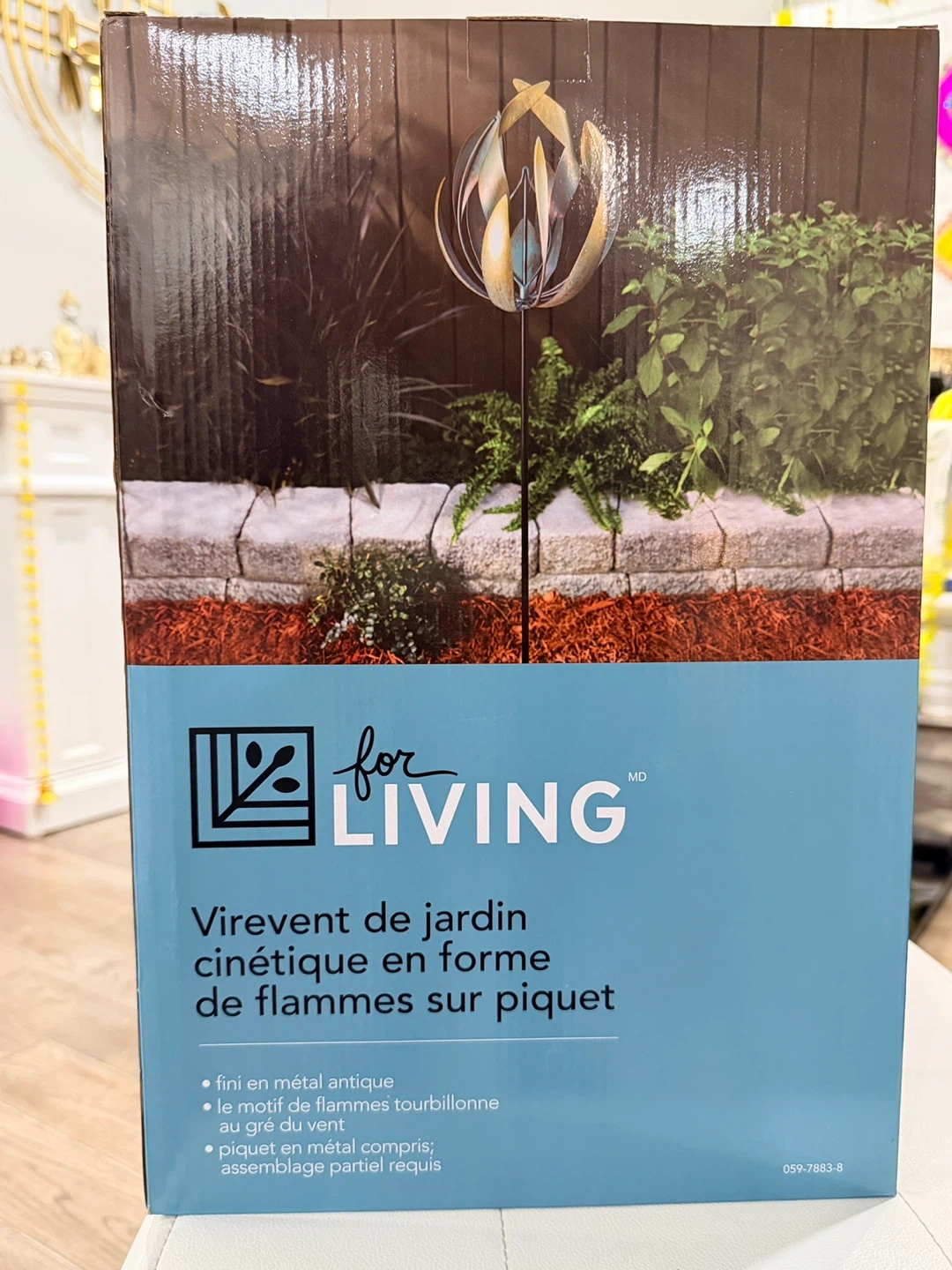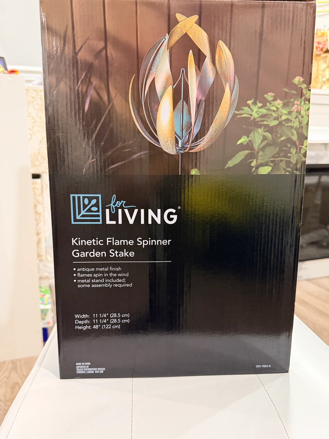 Add a touch of whimsy to your garden with this kinetic flame spinner from for LIVING! It features an antique metal finish and the flames spin in the wind. The metal stand is included, but some assembly is required.
