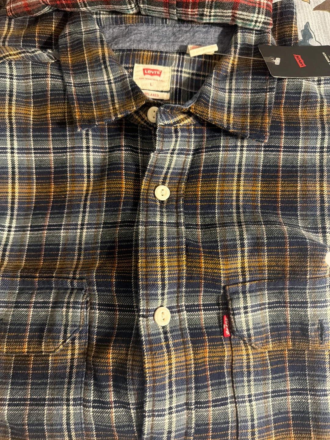Levi's flannel shirt in size large. This shirt has a relaxed fit and a classic plaid pattern. Great for layering or wearing on its own!