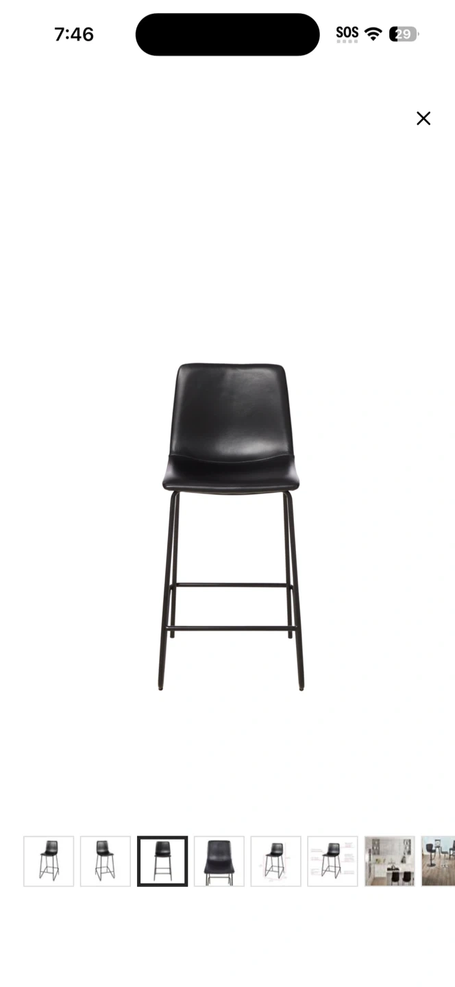 Selling a sleek black counter stool, perfect for your kitchen island or bar area! The stool is 26 inches tall and has a modern design. It's in great shape and ready for a new home