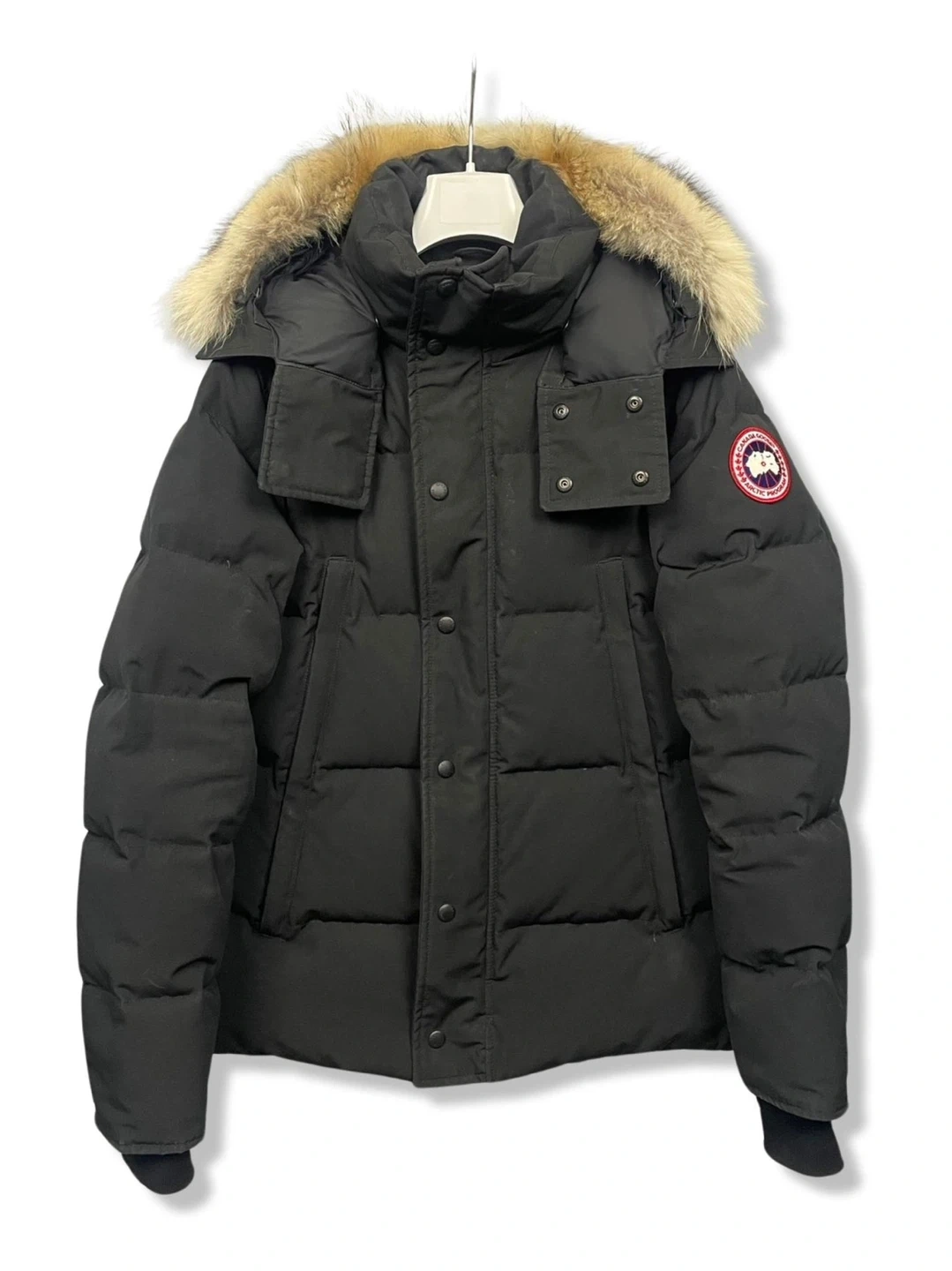 Selling a Canada Goose black padded jacket in size L. It's in great condition and ready to keep you warm this winter! Comes with the original fur trim.