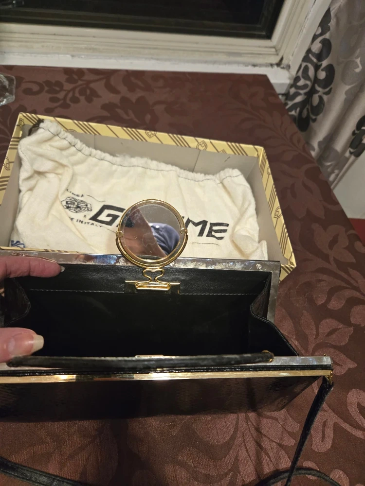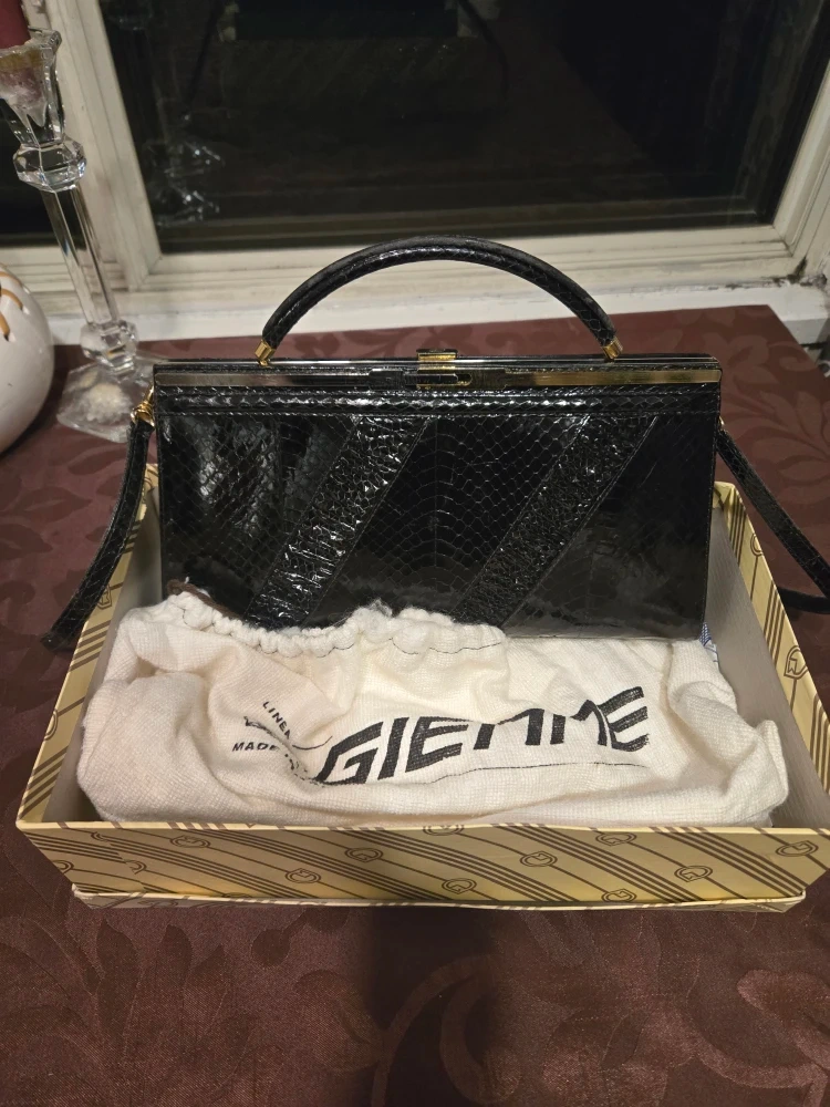 Selling a Giemme handbag in a stylish black snakeskin pattern. It comes with its original box and a dust bag to keep it protected.