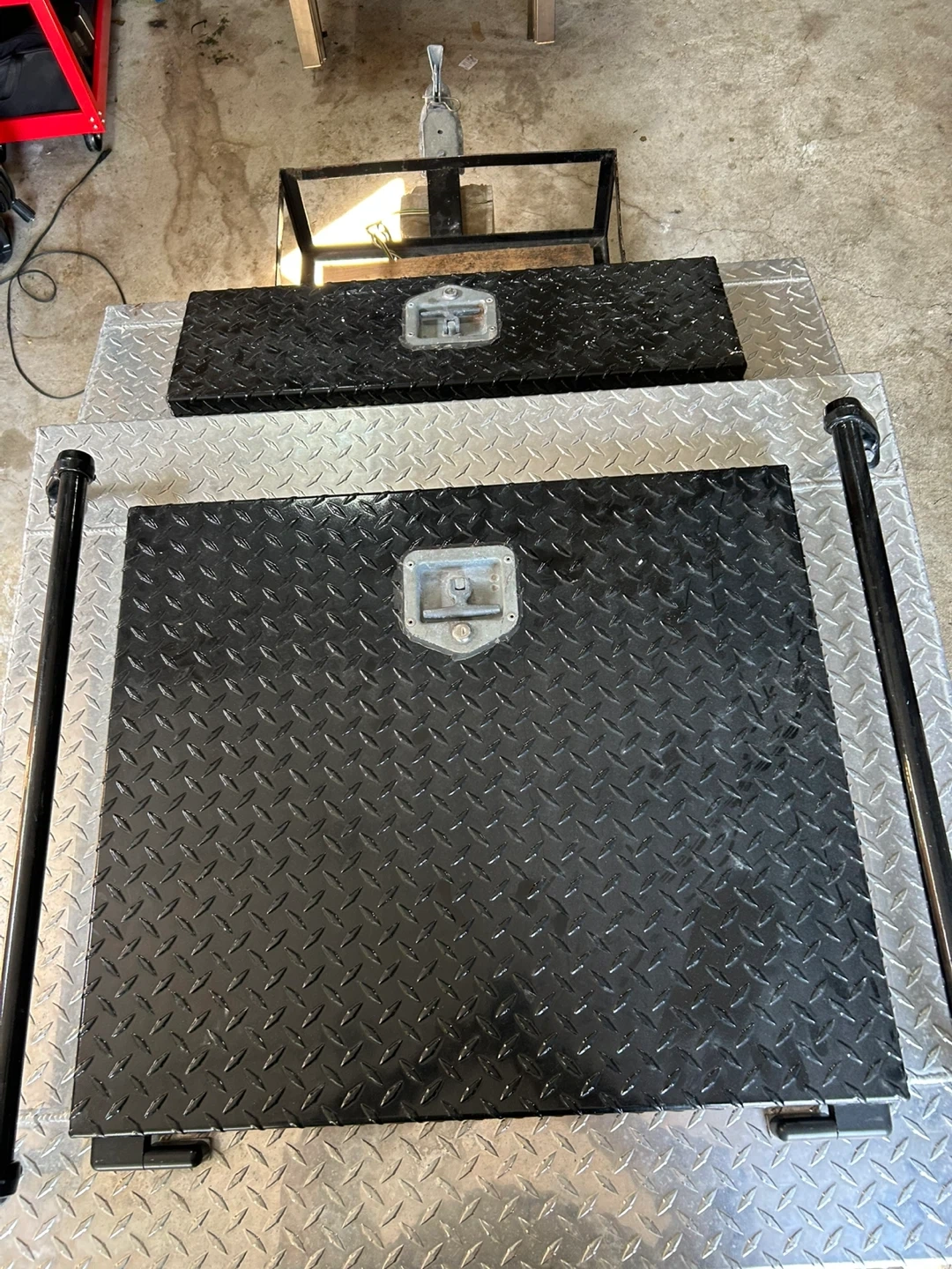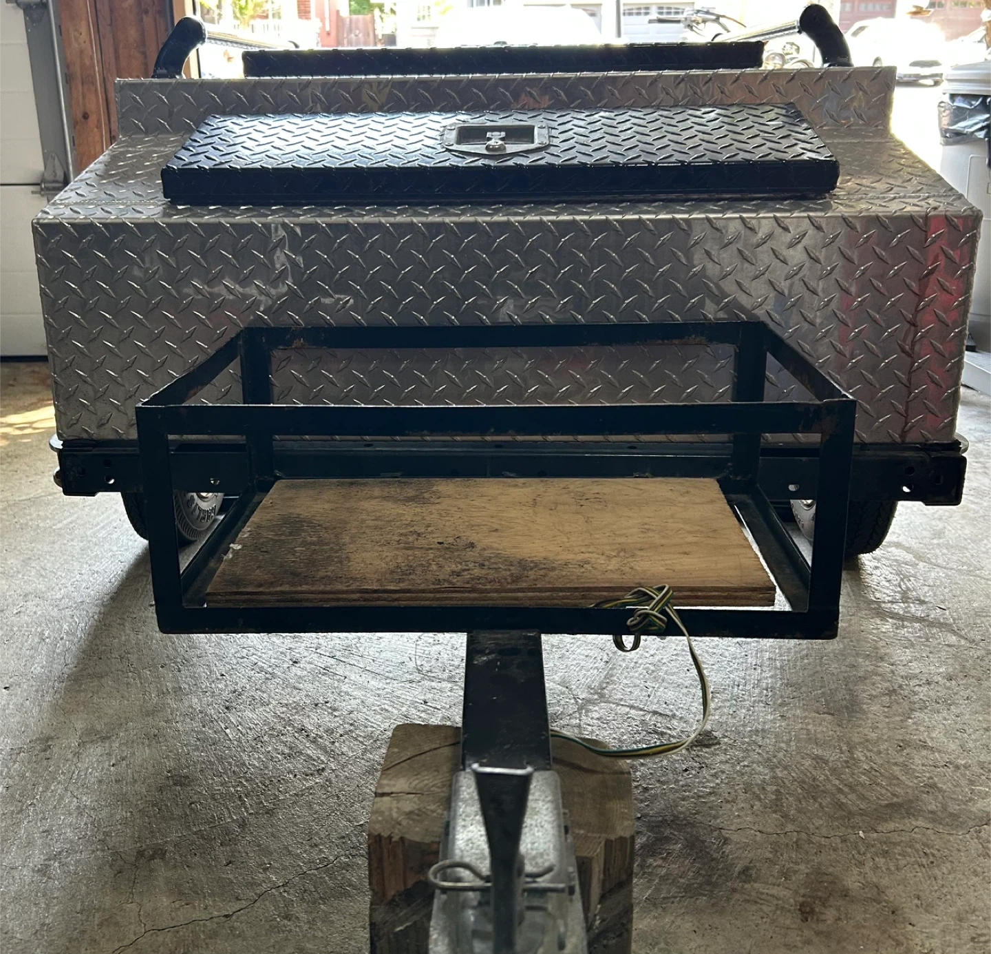 Selling a custom-built utility trailer! It features a durable diamond plate construction and a sturdy frame. Perfect for hauling equipment or gear. It has a spacious interior and a convenient rear hitch.