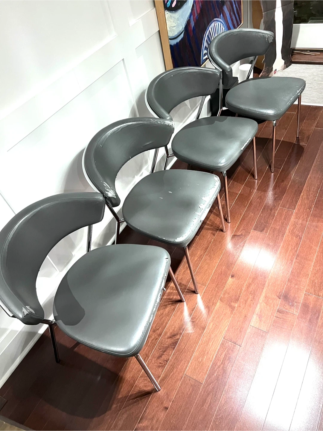 Buy & SellSet of 4 Grey ChairsSet of 4 Grey Chairs$100Selling a set of 4 grey dining chairs. They have some wear and tear, as you can see in the photos. Pickup only.ConditionOkayDimensions22 x 21 x 300 chats·0 favorites·38 viewsSELLERverifiedSuttonRegal Heights1195 reviewsWHERE TO MEETNear Oakwood Collegiate