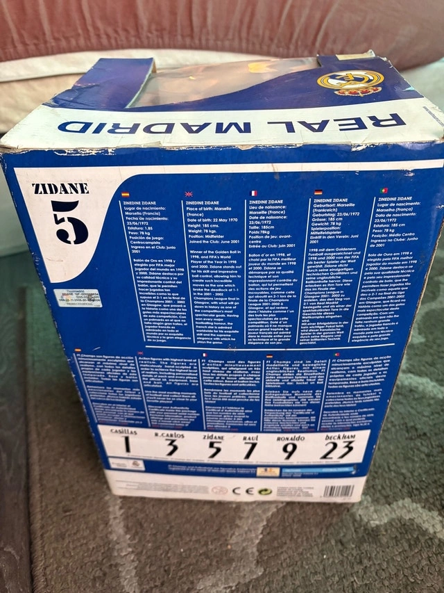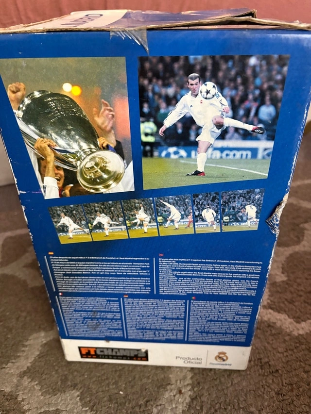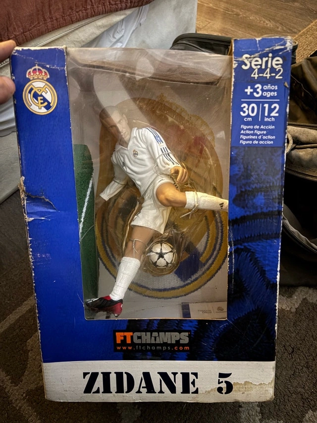 I'm offering a FT Champs Zidane 12in/30cm figure. It's a great collectible for any Real Madrid fan. The box is a little worn, so it's in used condition, but the figure is still in great shape! 4/10 condition on the box but the figure has never been taken out of the box. Better price due to the poor condition of the box.