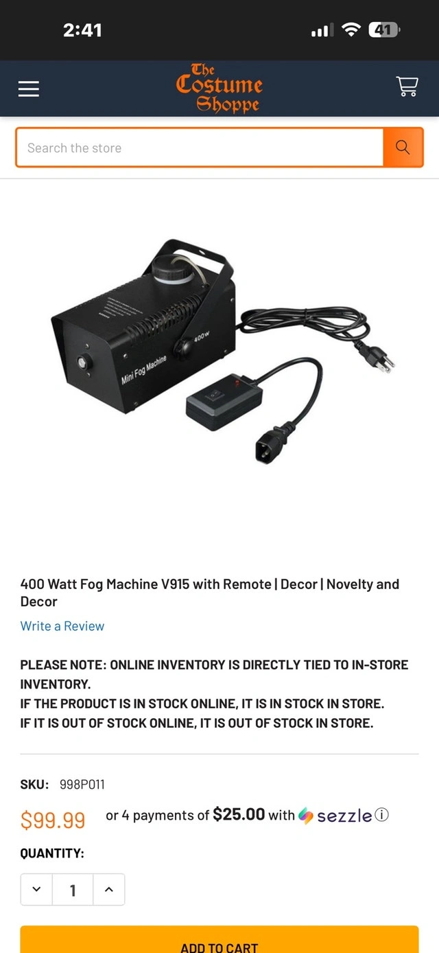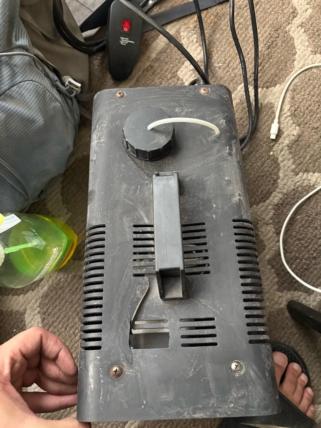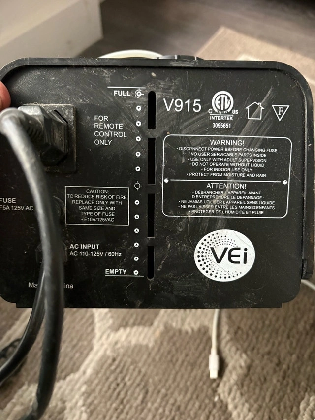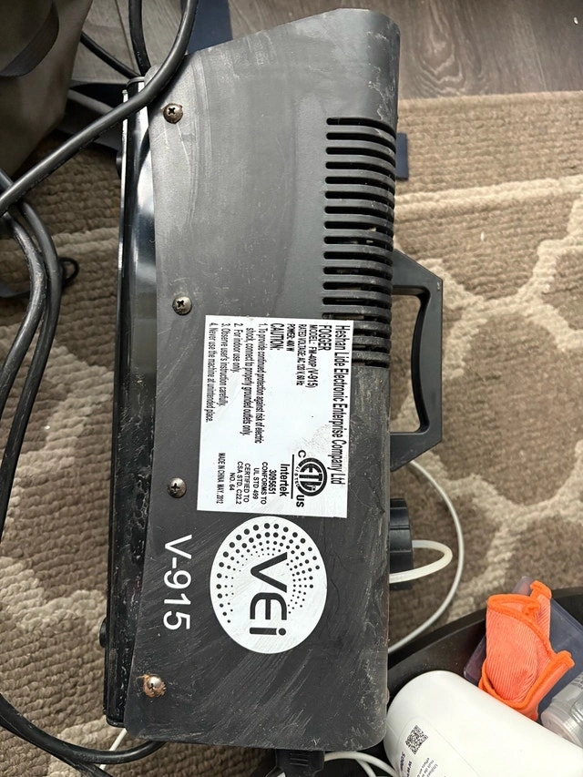 Create a spooky atmosphere with this VEI V915 400W fog machine, perfect for Halloween parties or theatrical productions. This is a used fog machine. While it's ready to pump out fog, please note it has cosmetic wear and tear from previous use. It has some scratches and is a little dusty. If you're not too worried about the looks and want a functional fog machine, this is great! For perspective, these fog machines sold for $100 new. 4/10 condition slight crack on the top. Still turns on and works fine.