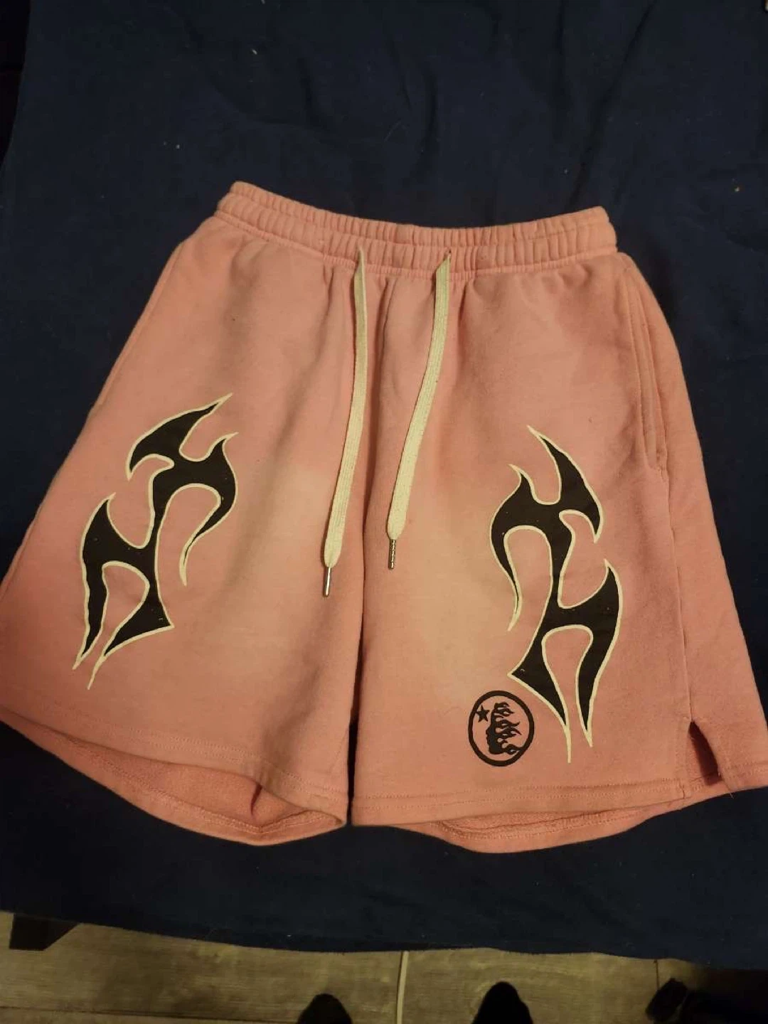 Here are some Hellstar pink shorts with graphic design, They're a size small and in great condition.