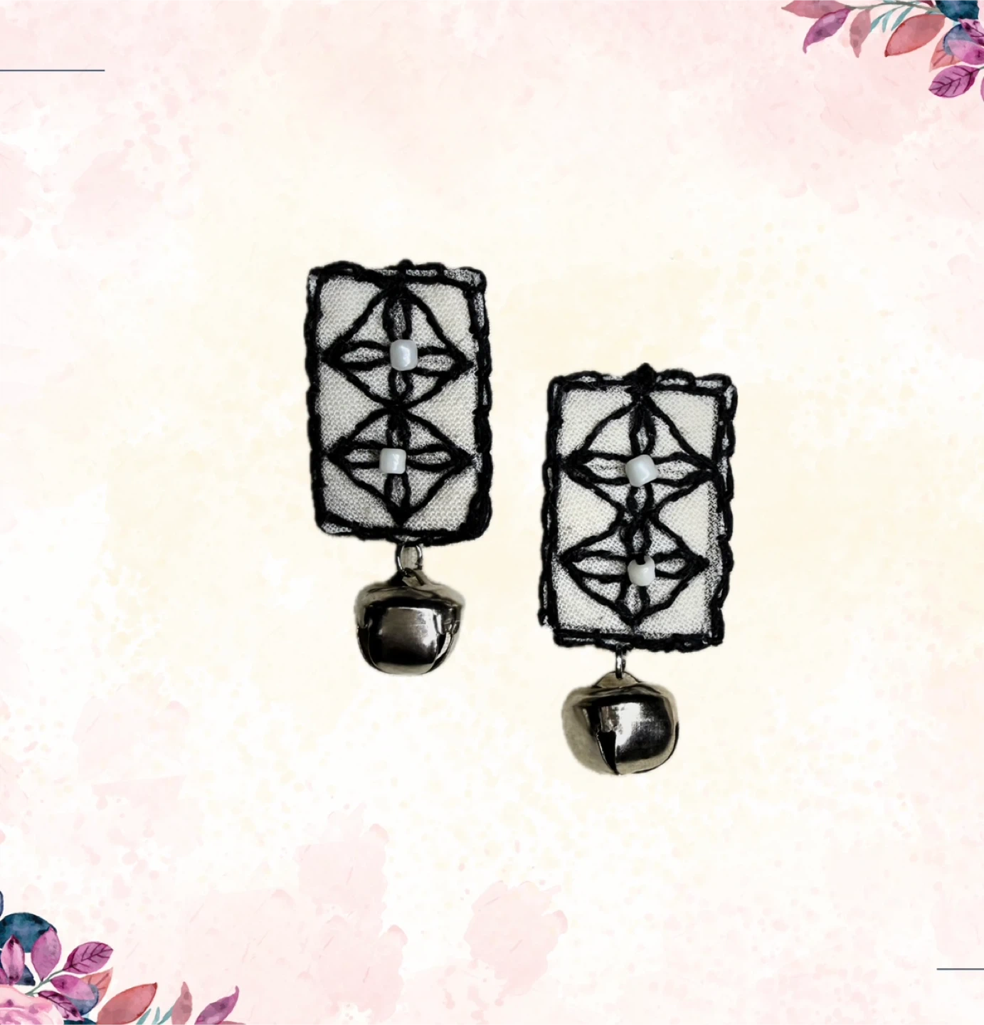 Check out these unique handmade earrings! They feature a delicate design with a small bell charm. Perfect for adding a touch of whimsy to any outfit. Made with lots of love and care.