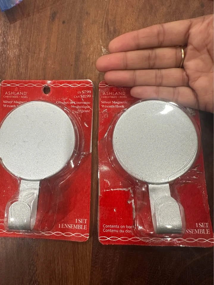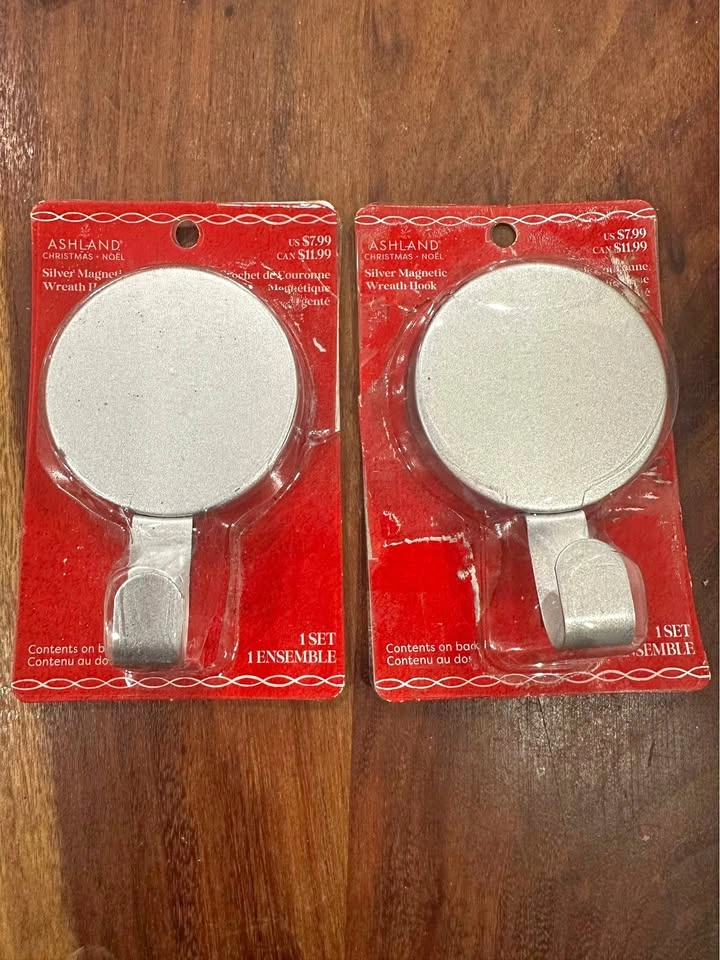 Magnetic wreath holder from michaels, never used. Can be used directly on iron door. Each holder has 2 pieces so can be used one at front and one on back of the door...and great grip.