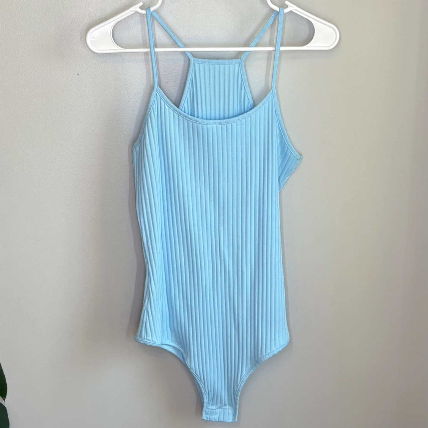 Zaful Light Blue Ribbed Racerback Cami Bodysuit Womens Size XL