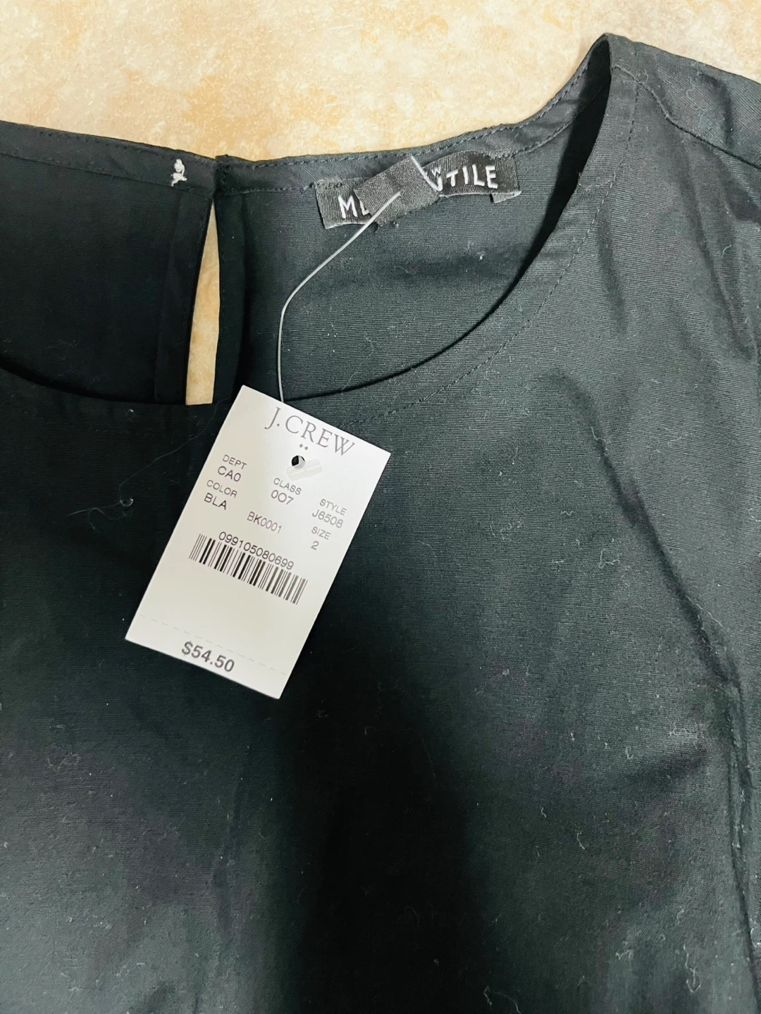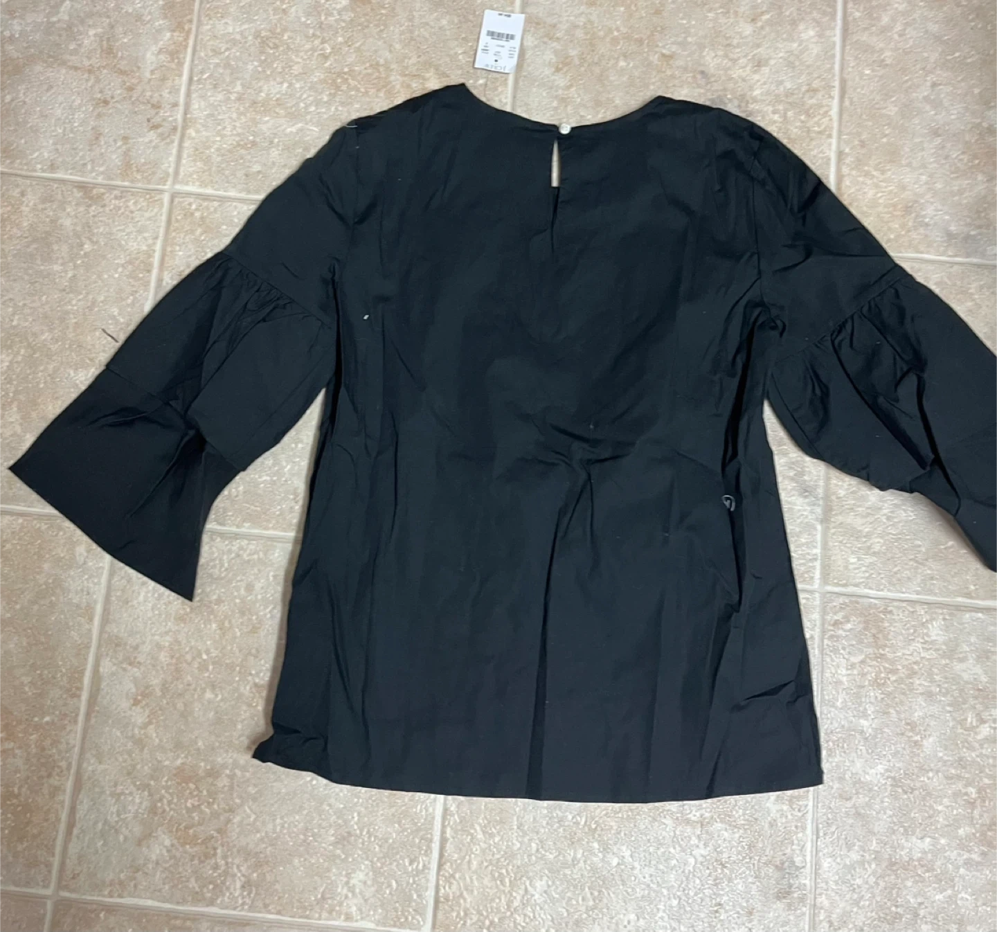 This is a J.Crew black ruffle sleeve top in size small. It's brand new with tags still attached! Originally bought for $54.50. The material is 98% cotton and 2% elastane.