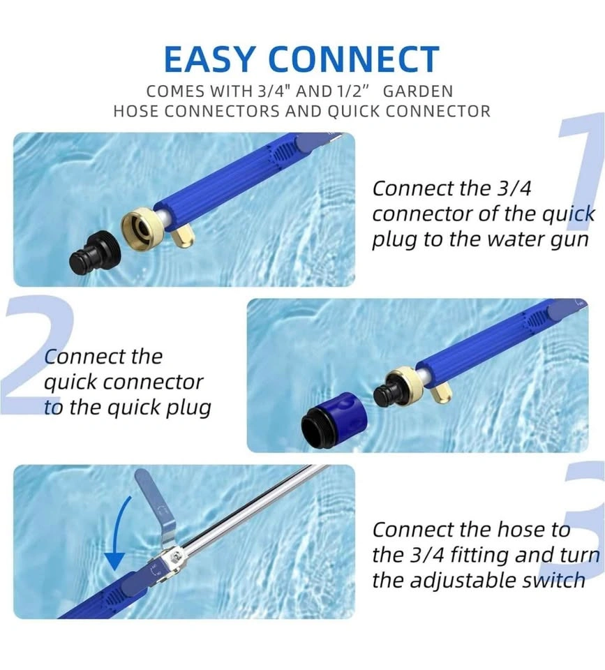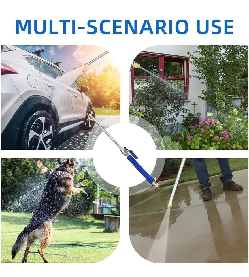 Jet Nozzle Power Washer for Garden Hose, High Pressure Hose Nozzle with 2 Jet Different Nozzle and Hose Quick Connectors, Hydro Power Washer Hose Attachment for Car, Patio, 18 Inch, Blue