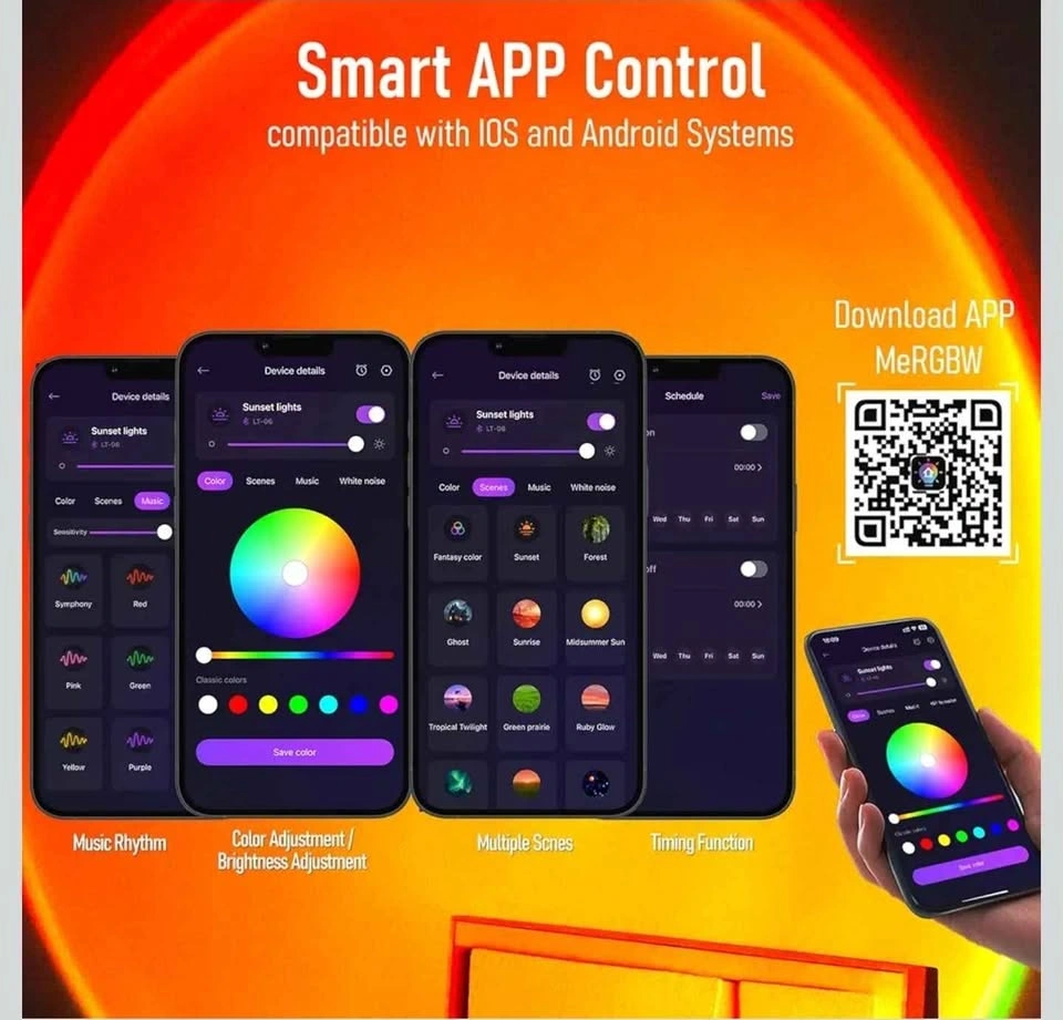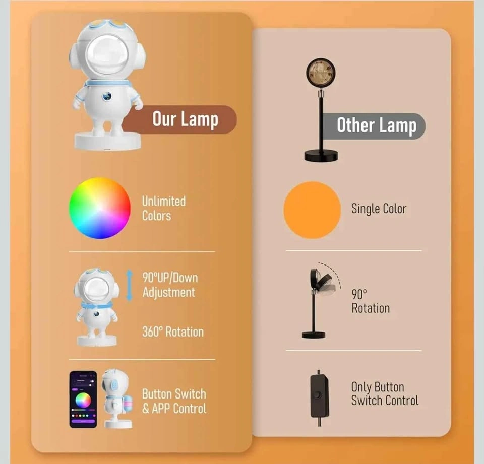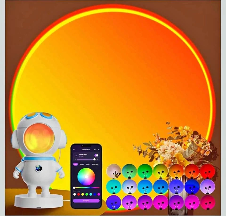 Sunset Lamp Projector with APP & Button Control, 360° Magnetic Adjustable Head RGB Multicolor Changing LED Mood Light, Astronaut Sunlight Lamp for Bedroom, Photography, Party, TikTok Live, Room Decor
